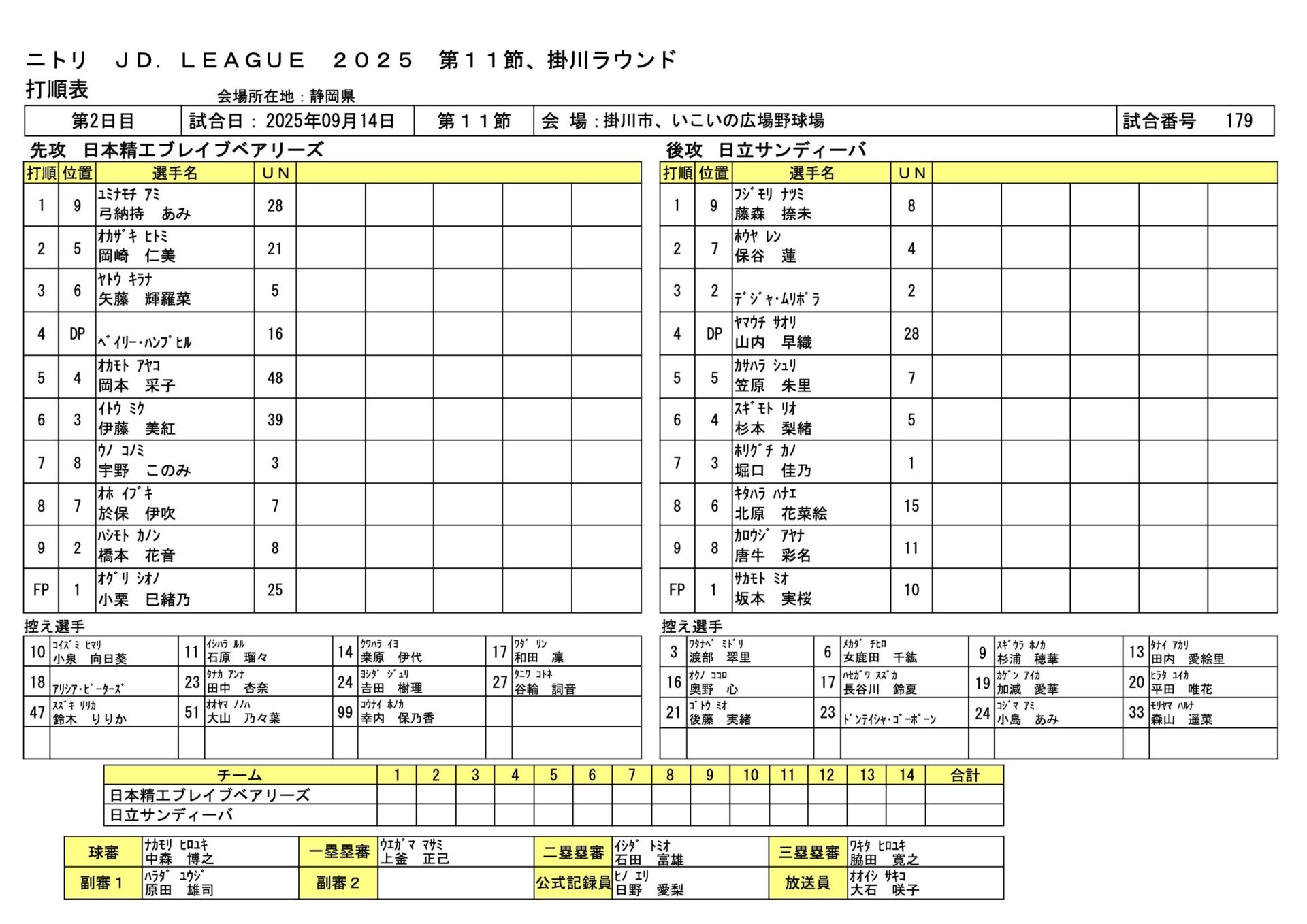 日立 7-2 日本精工 JDL第11節掛川ラウンド 2025.9.14 女子ソフトボール