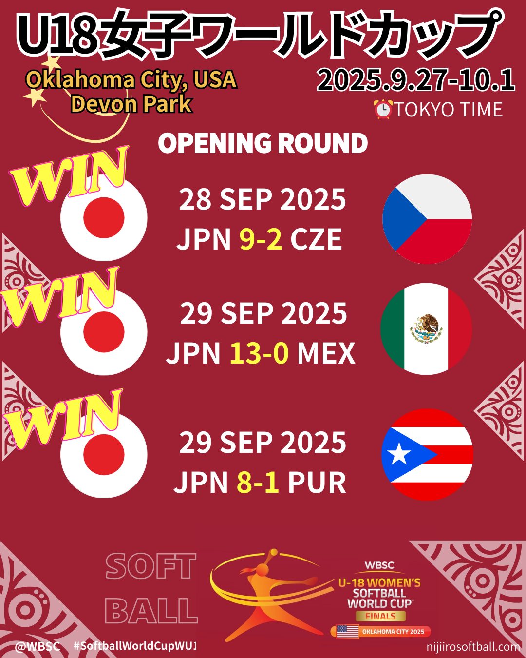オープニングラウンド、日本は3戦3勝しました。全てコールド勝ちです。