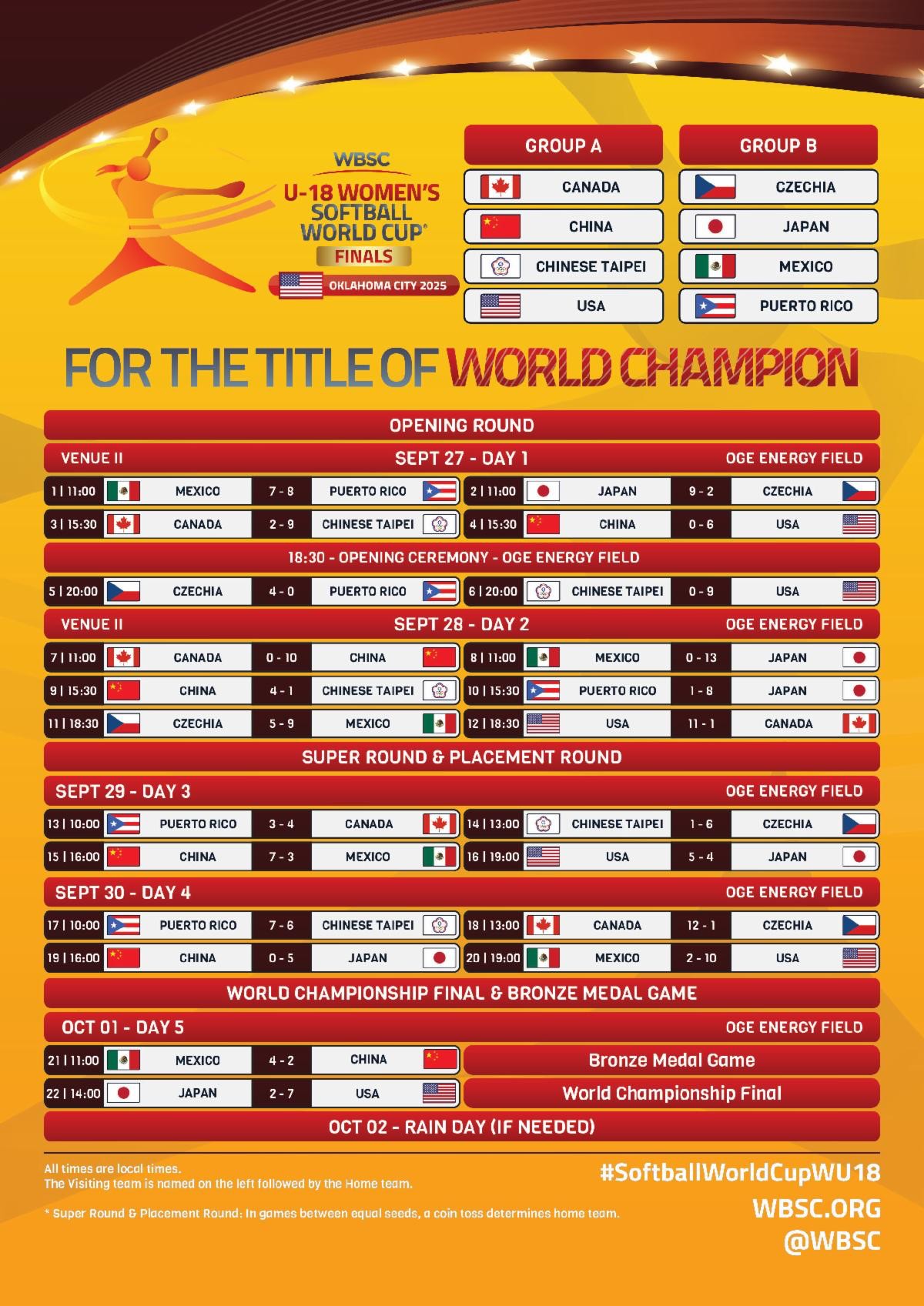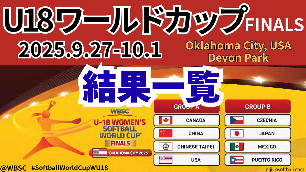 U-18女子ソフトボールワールドカップファイナル(U18WOMEN'S SOFTBALL WORLD CUP FINALS)の結果一覧ページです。試合詳細は公式サイトでご確認ください。