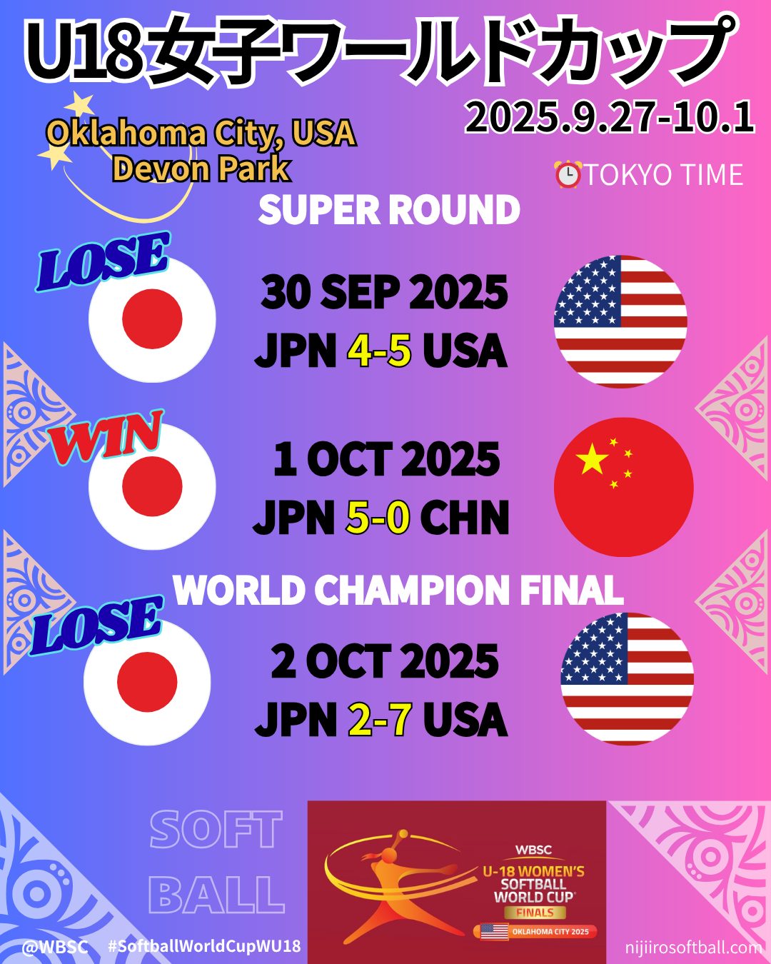 日本銀メダル‼️【結果一覧】WBSC U-18女子ソフトボールワールドカップファイナル #SoftballWorldCupWU18