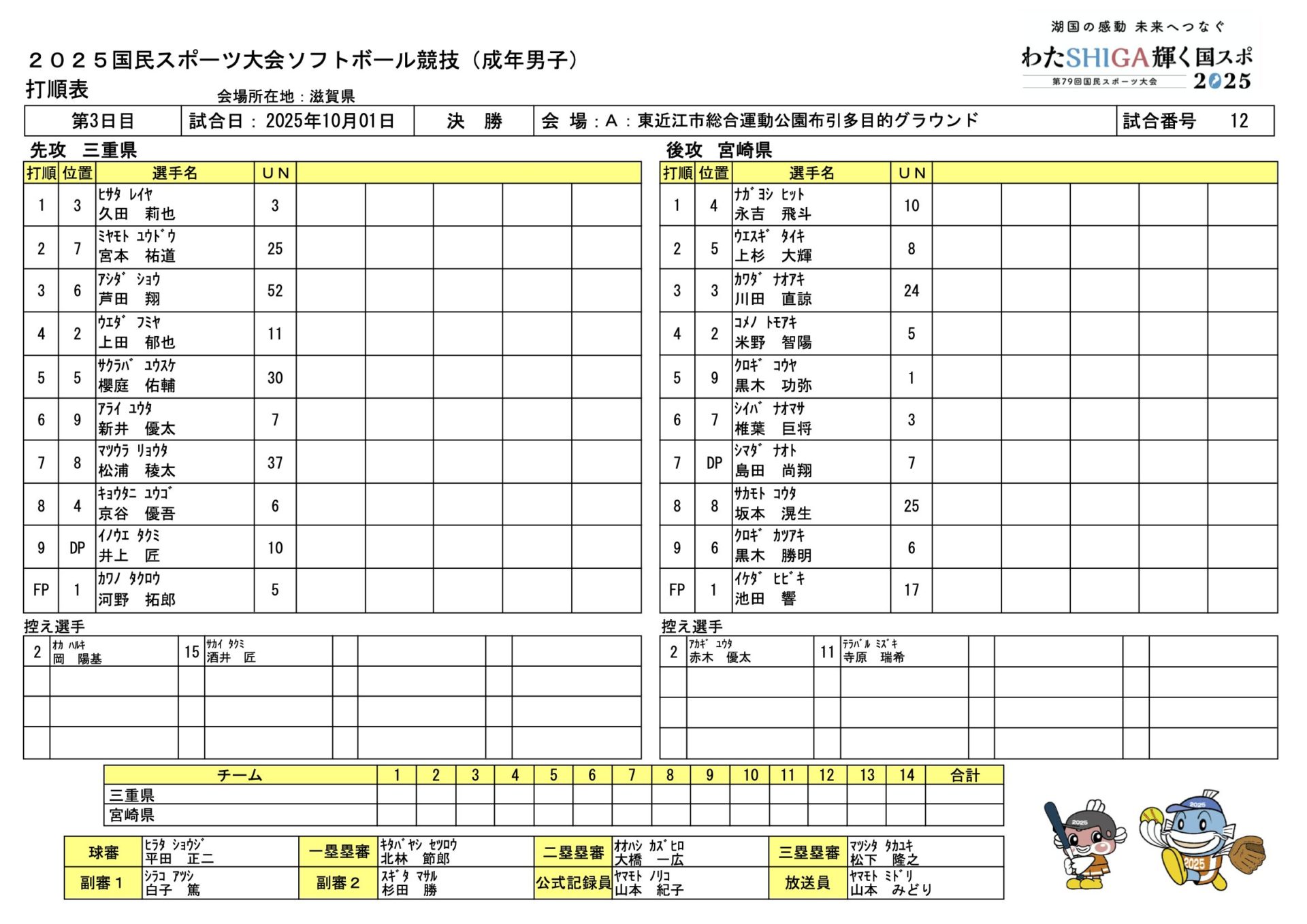 三重県50年ぶり優勝!【国スポ】成年男子 三重6-0宮崎 ソフトボール試合レポート