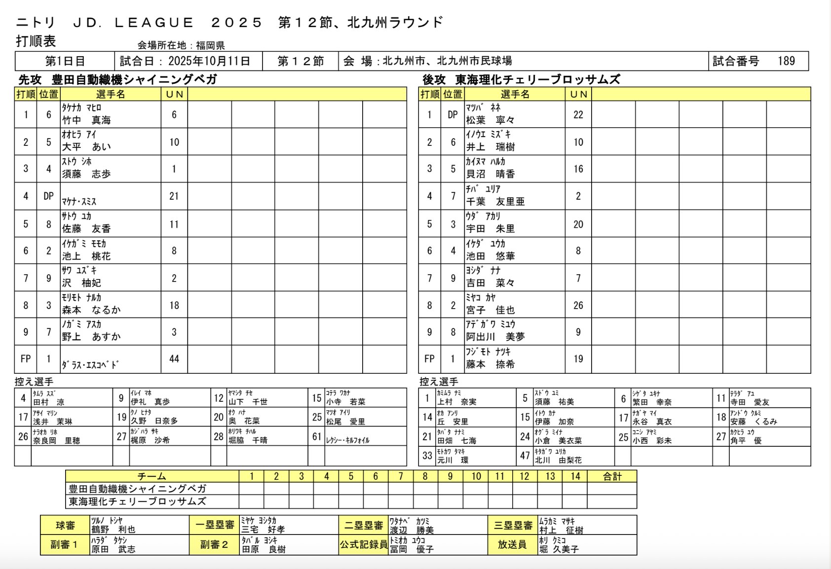 豊田織機4-1東海理化 JDL第12節北九州ラウンド 2025.10.11 女子ソフトボール試合結果