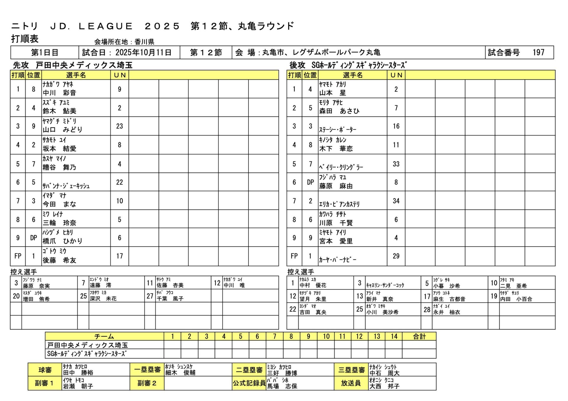 戸田中央 16-2 SGH JDL第12節丸亀ラウンド 2025.10.11 女子ソフトボール試合結果