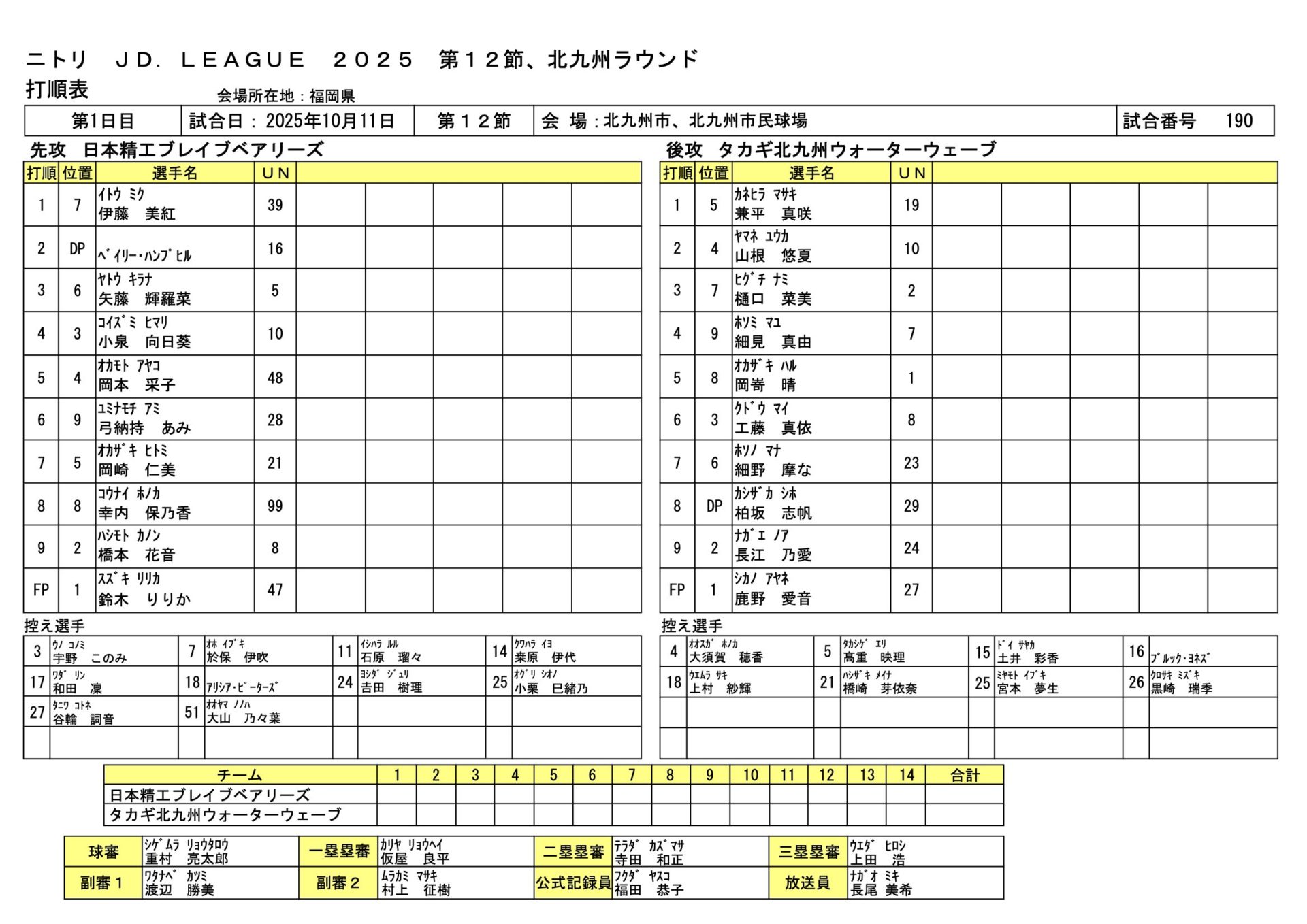 タカギ4-2日本精工 JDL第12節北九州ラウンド 2025.10.11 女子ソフトボール試合結果
