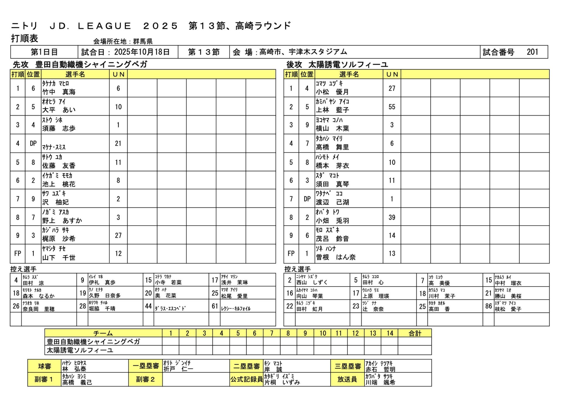 | 太陽誘電 | 曽根はん奈、上原理瑛、辻奈奈、勝山美桜、高田香、向山琴葉、○曽根はん奈 - 小畑兎羽、西山しずく、田村虹月、小畑兎羽 |