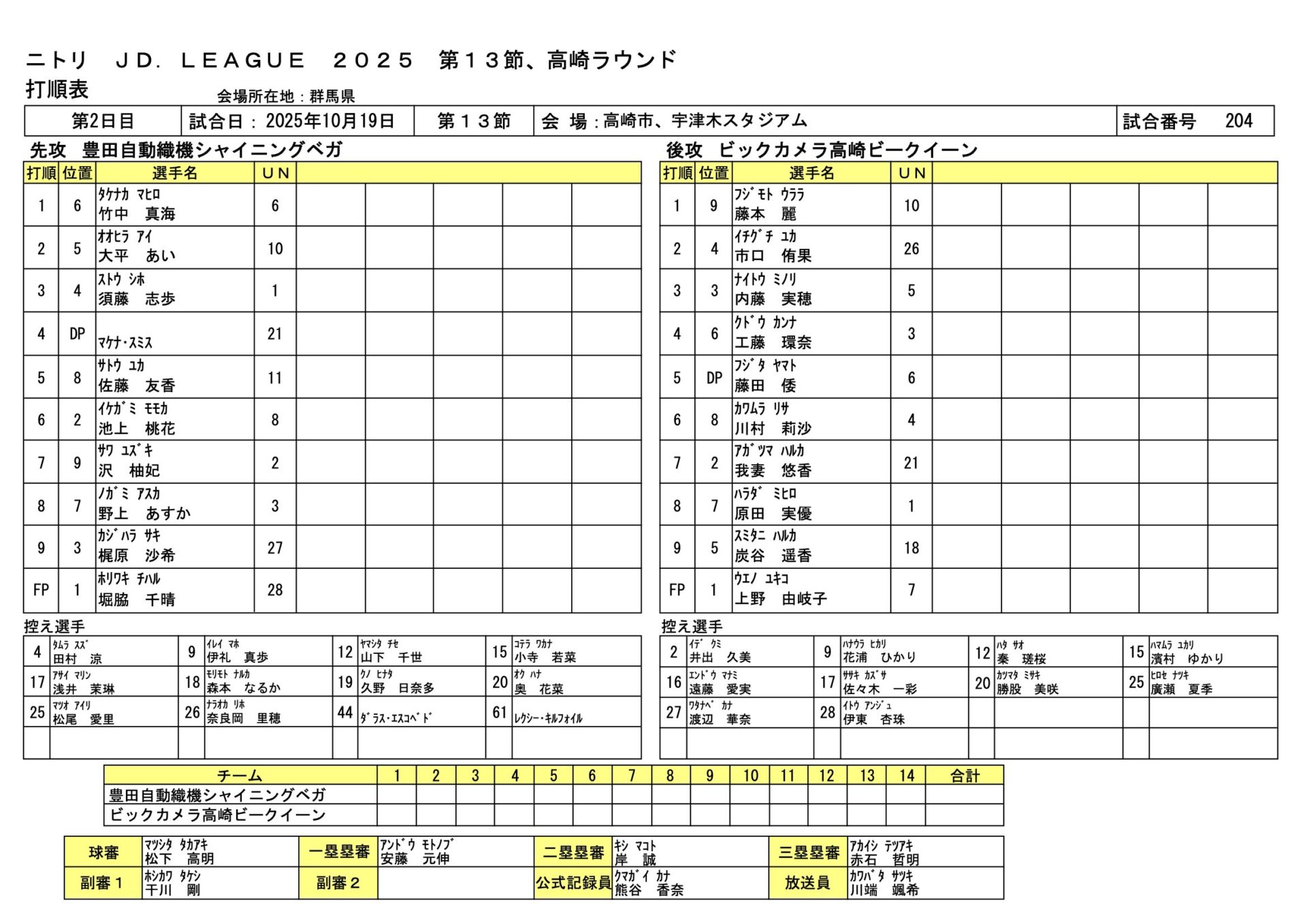 | 本塁打 | 内藤 実穂(ビ)、我妻 悠香(ビ) |
