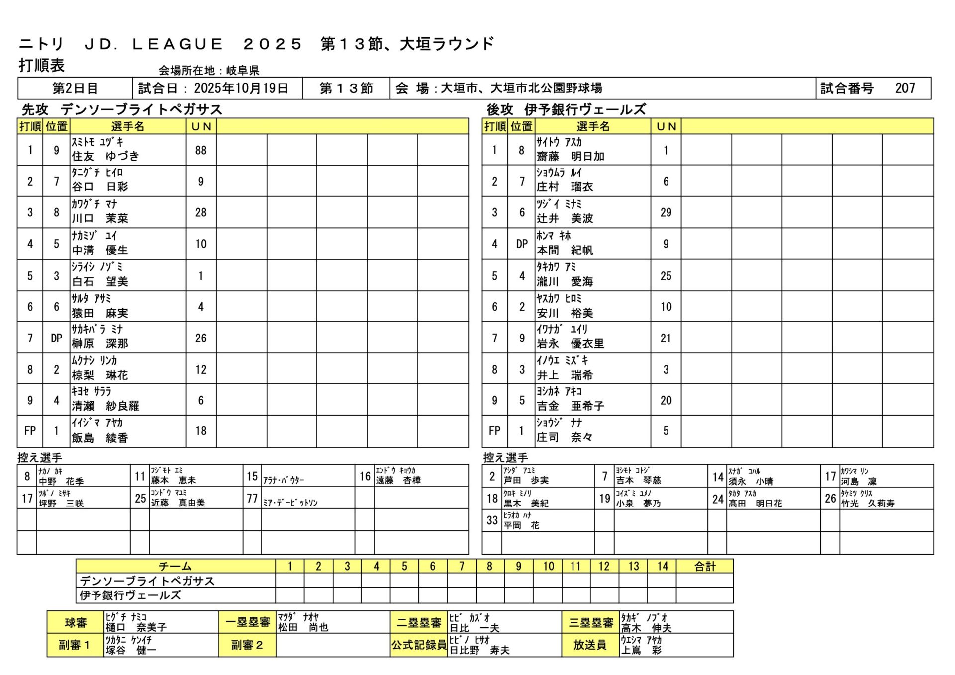 | 二塁打 | 白石 望美(デ)、岩永 優衣里(伊)、安川 裕美(伊) |
