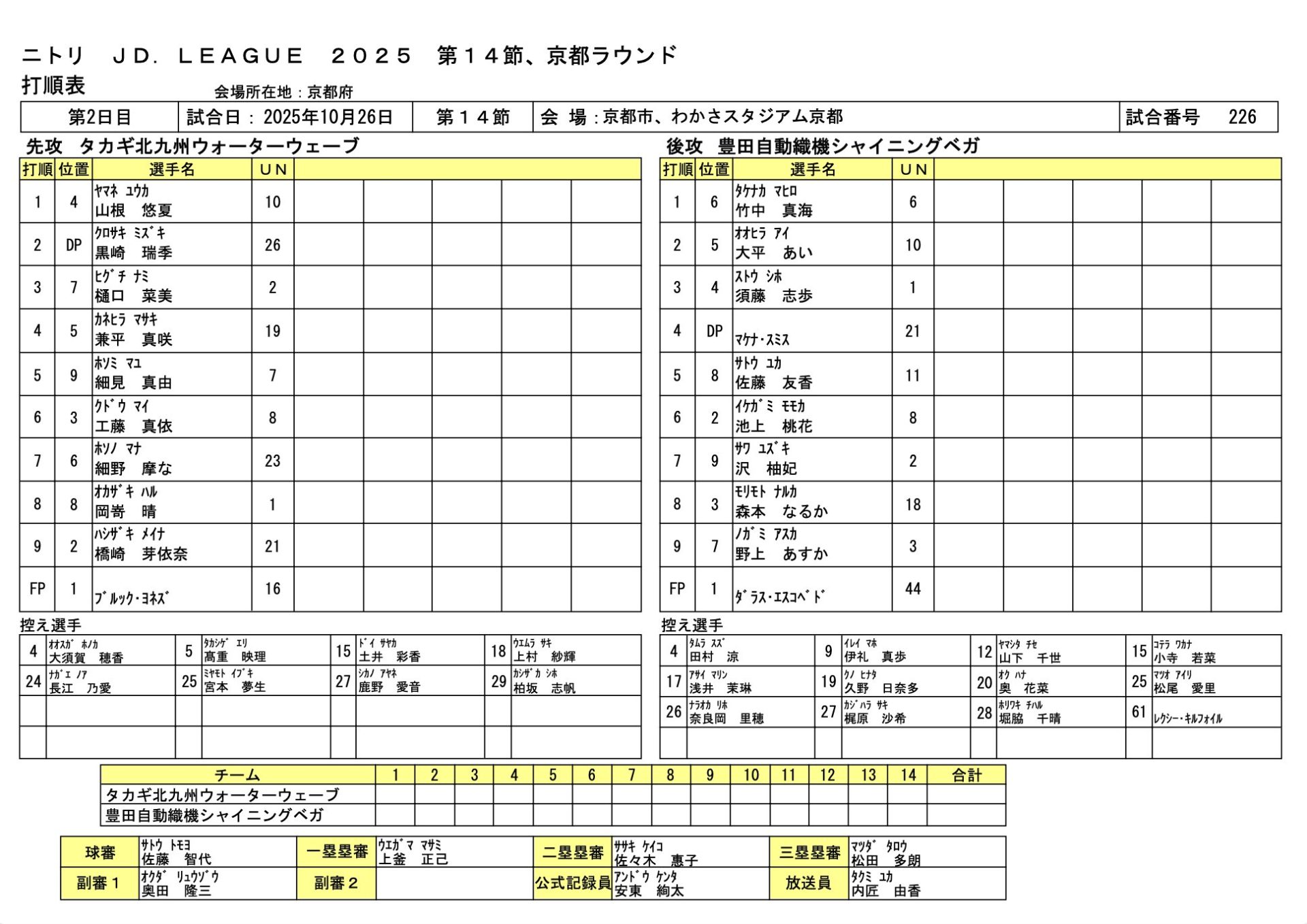 | タカギ北九州 | ●Brooke Yonez、鹿野愛音、上村紗輝-橋崎芽依奈、長江乃愛、橋崎芽依奈 |