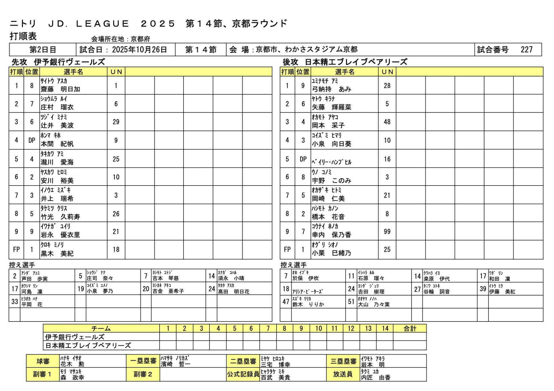伊予銀行6-1日本精工 JDL第14節京都ラウンド 2025.10.26 女子ソフトボール