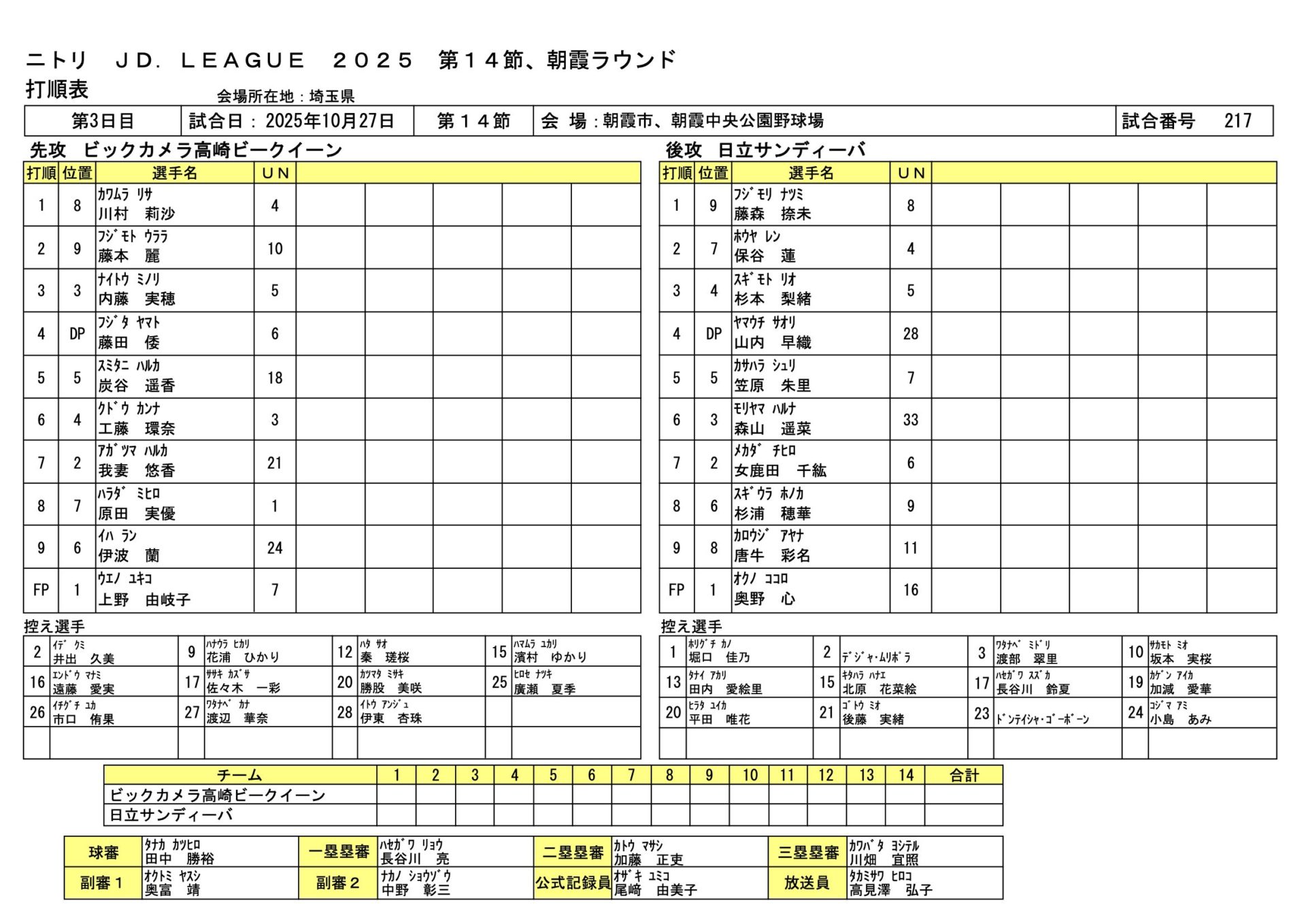 ビックカメラ4-2日立 JDL第14節朝霞ラウンド 2025.10.27 女子ソフトボール