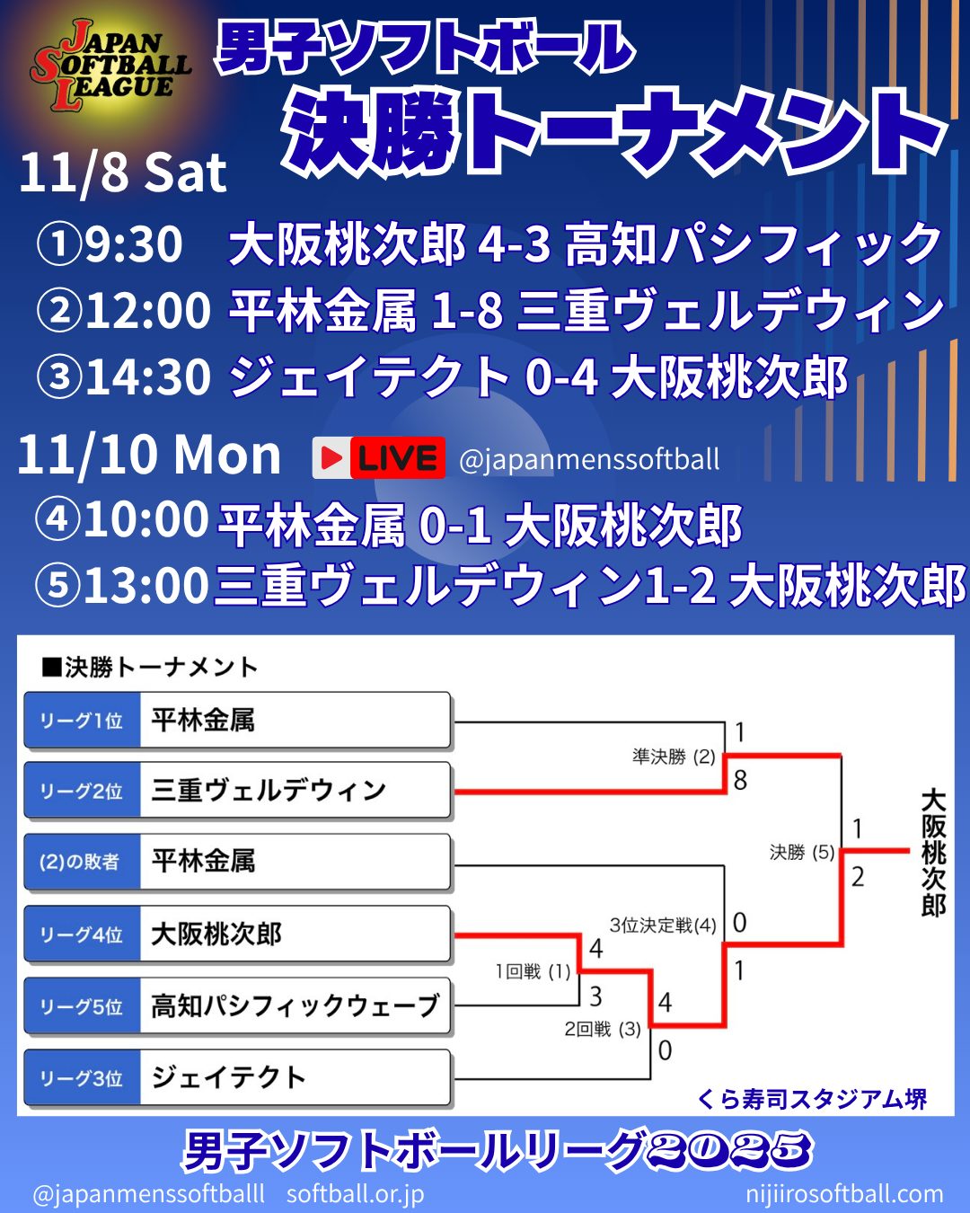 大阪桃次郎優勝‼️【男子決勝】決勝トーナメント2025 日本男子ソフトボールリーグ 2025.11/8-10 大阪府堺市