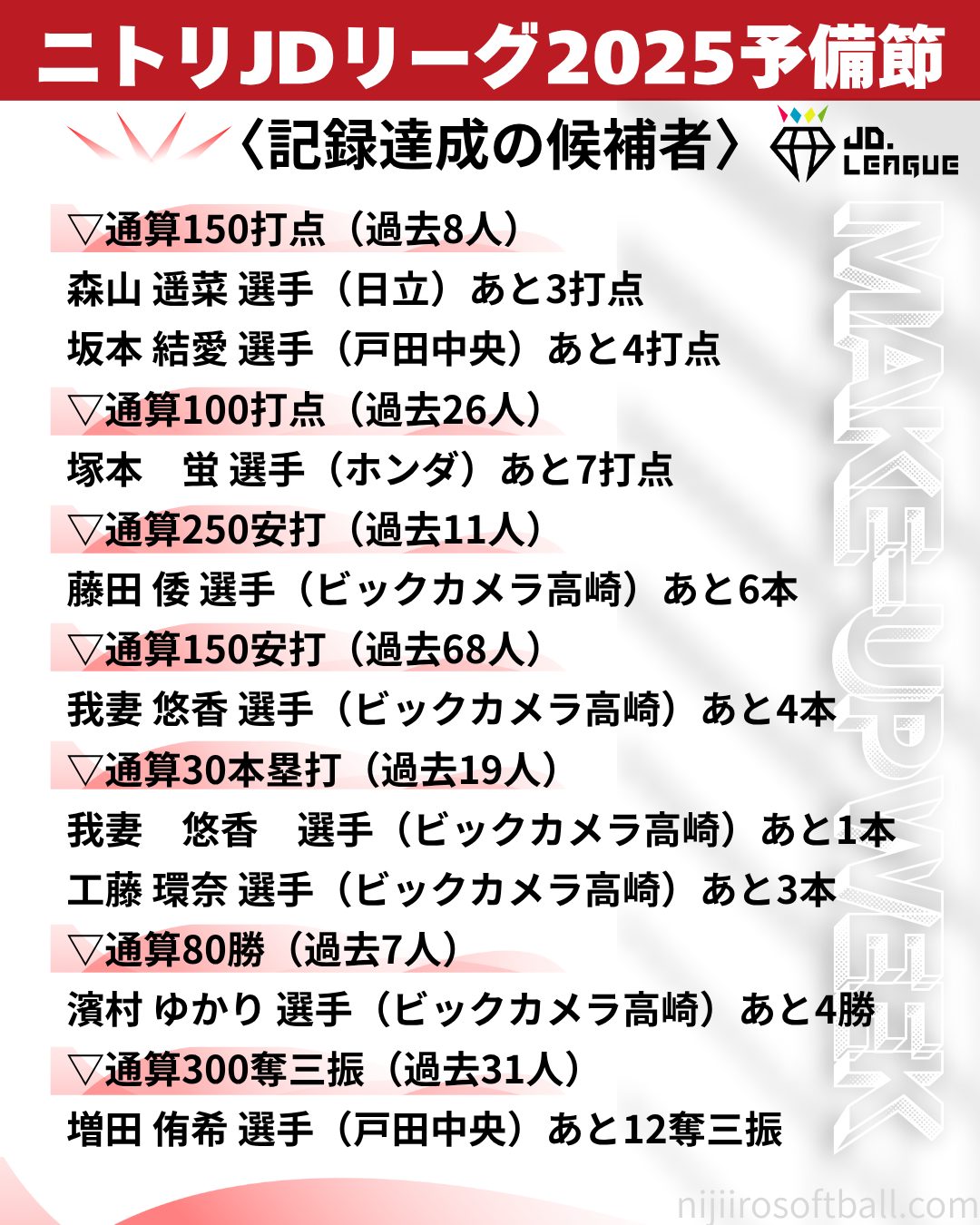 女子ソフトボールJDリーグ2025年予備節は11/1に群馬県高崎市の宇津木スタジアムで開催します。朝霞ラウンド順延試合3試合のみです。