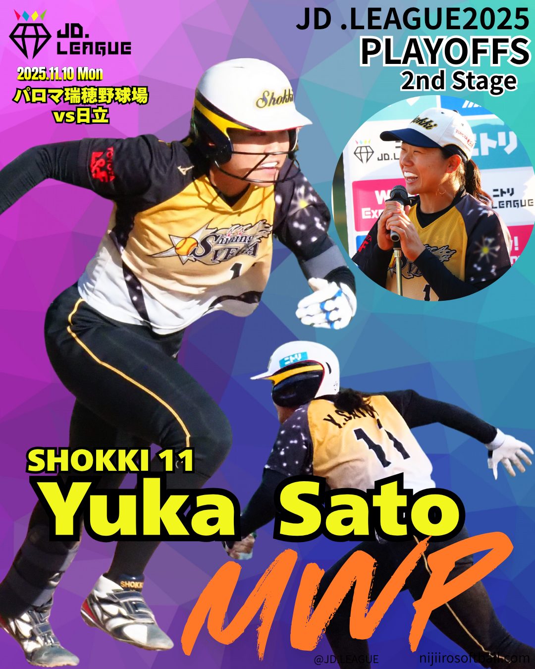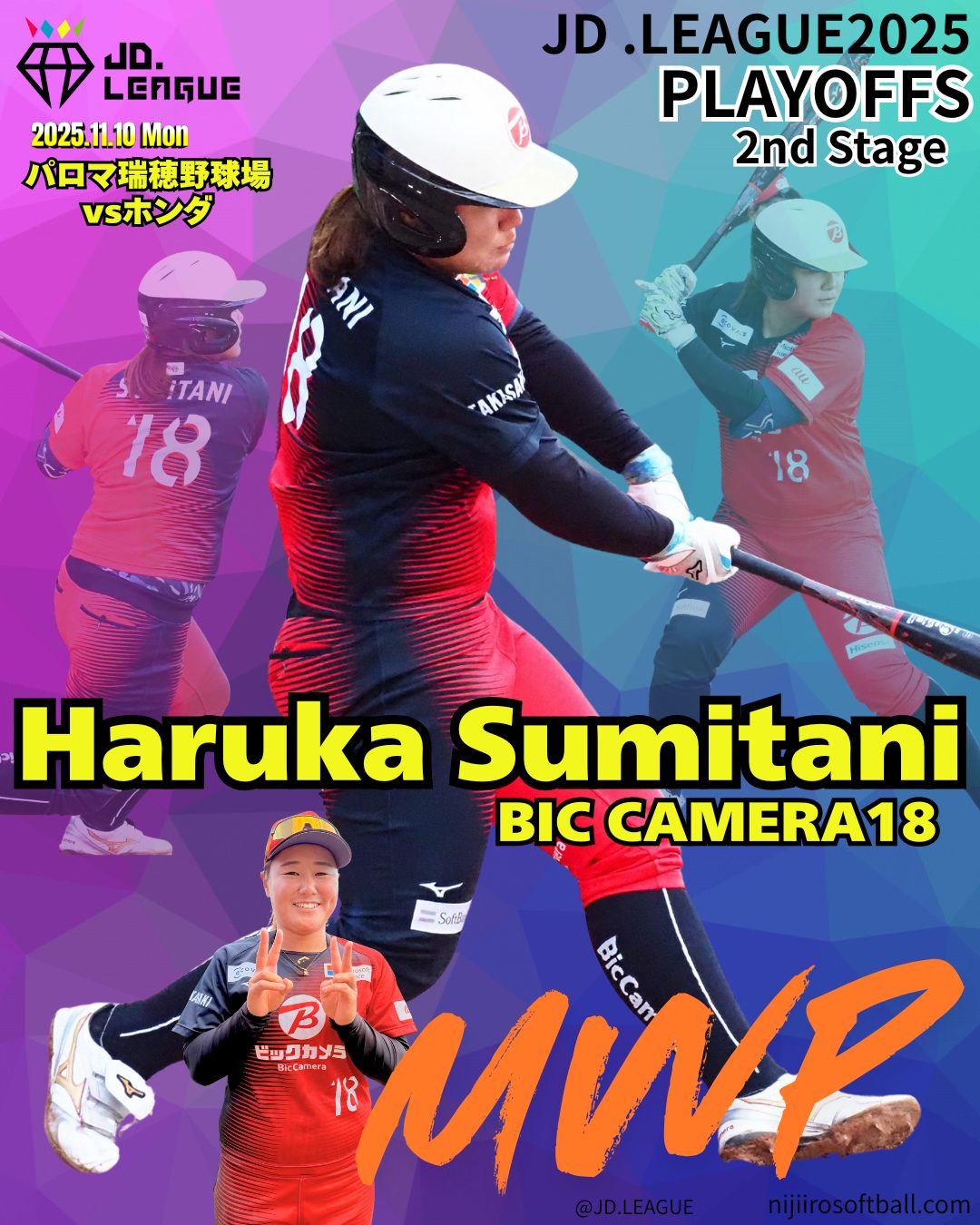 11/8(土)〜11/10(月)にパロマ瑞穂野球場で行われたJDリーグプレーオフは、ビックカメラ高崎と豊田自動織機が勝ち上がり、ダイヤモンドシリーズ進出を決めました。