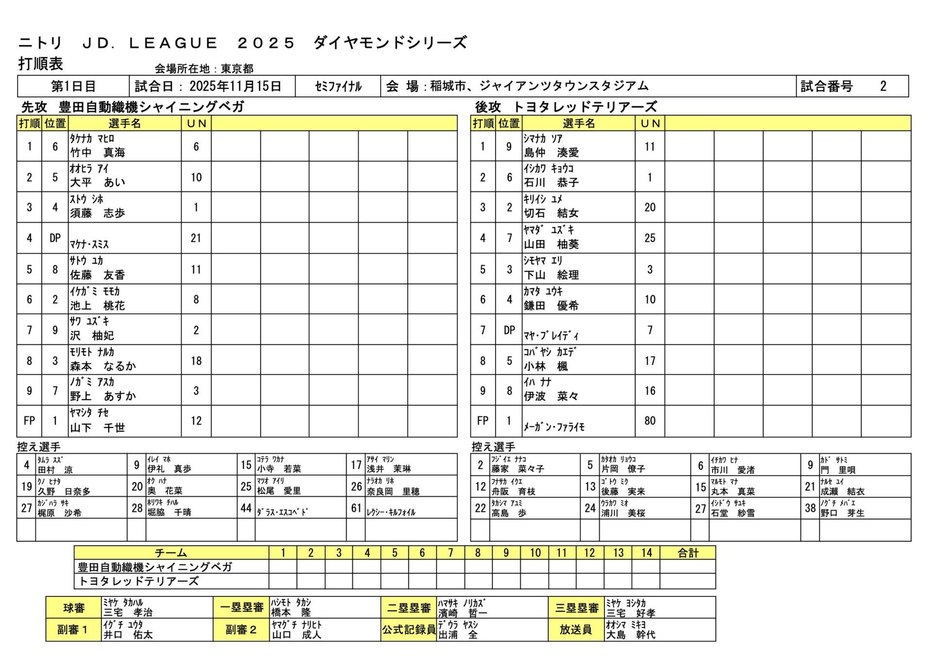 トヨタ 3-0 豊田自動織機 JDLダイヤモンドシリーズ 2025.11.15 女子ソフトボール