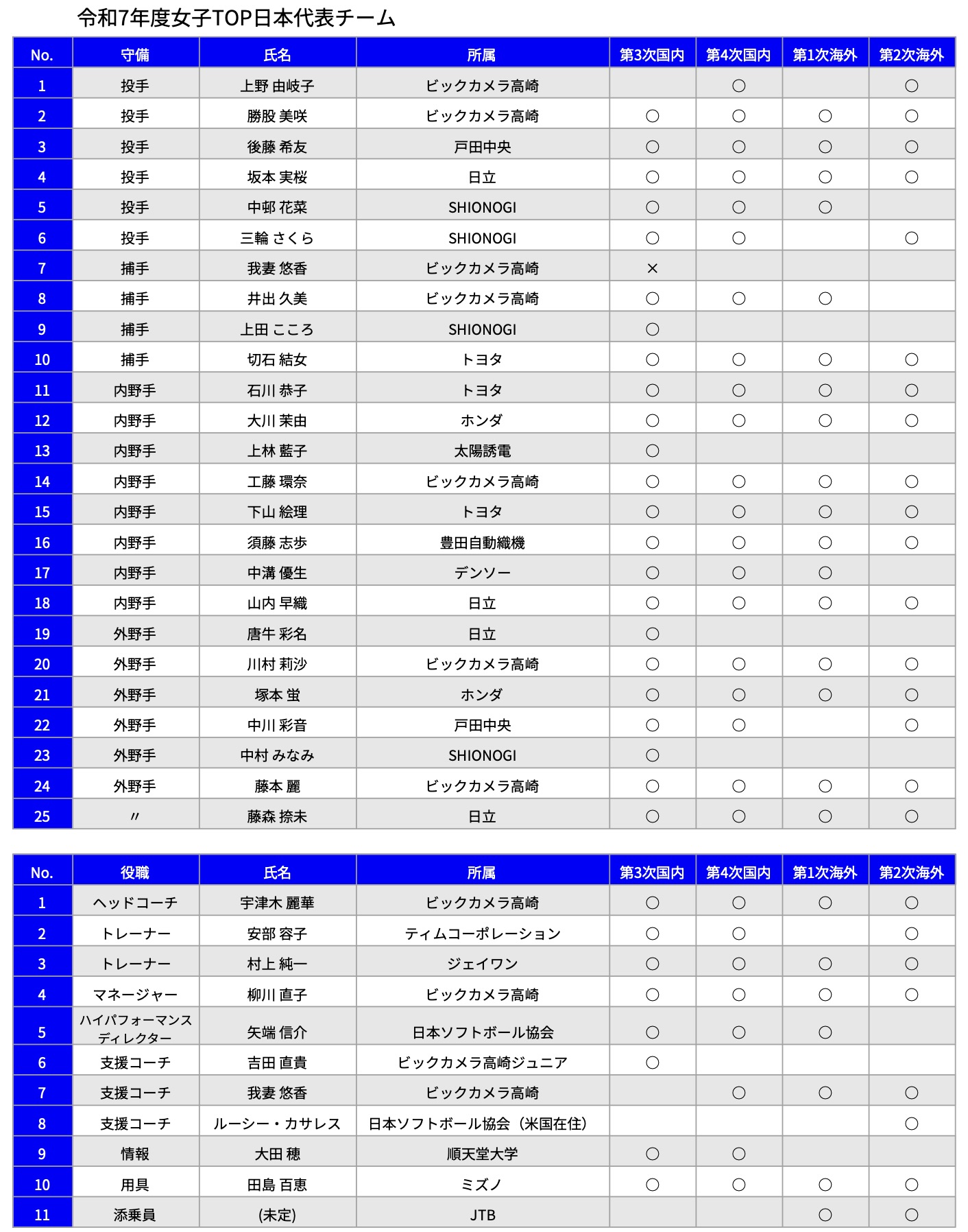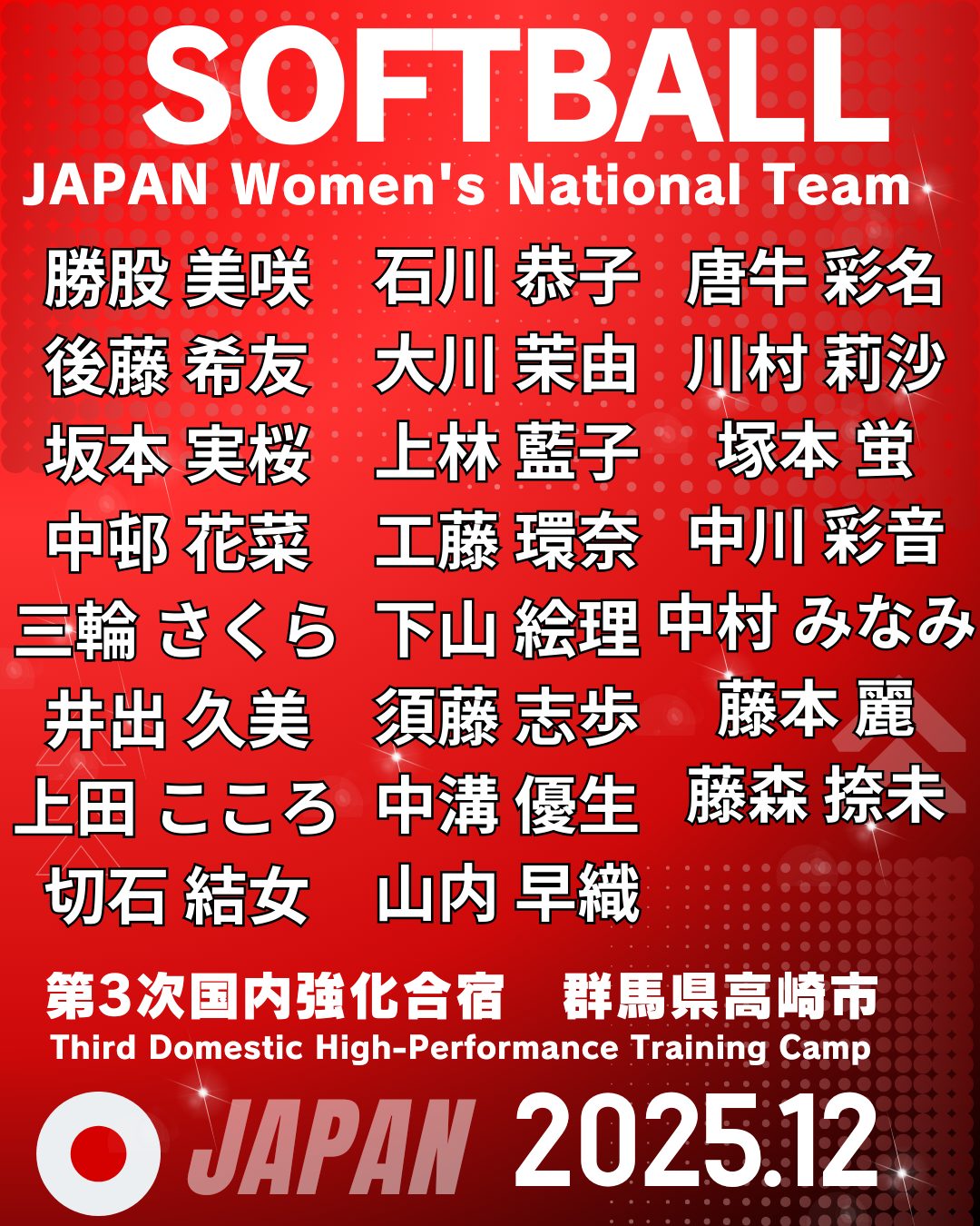 JAPAN【高崎合宿】女子ソフトボール日本代表 第3次国内強化合宿 2025.12/4-16 群馬県高崎市