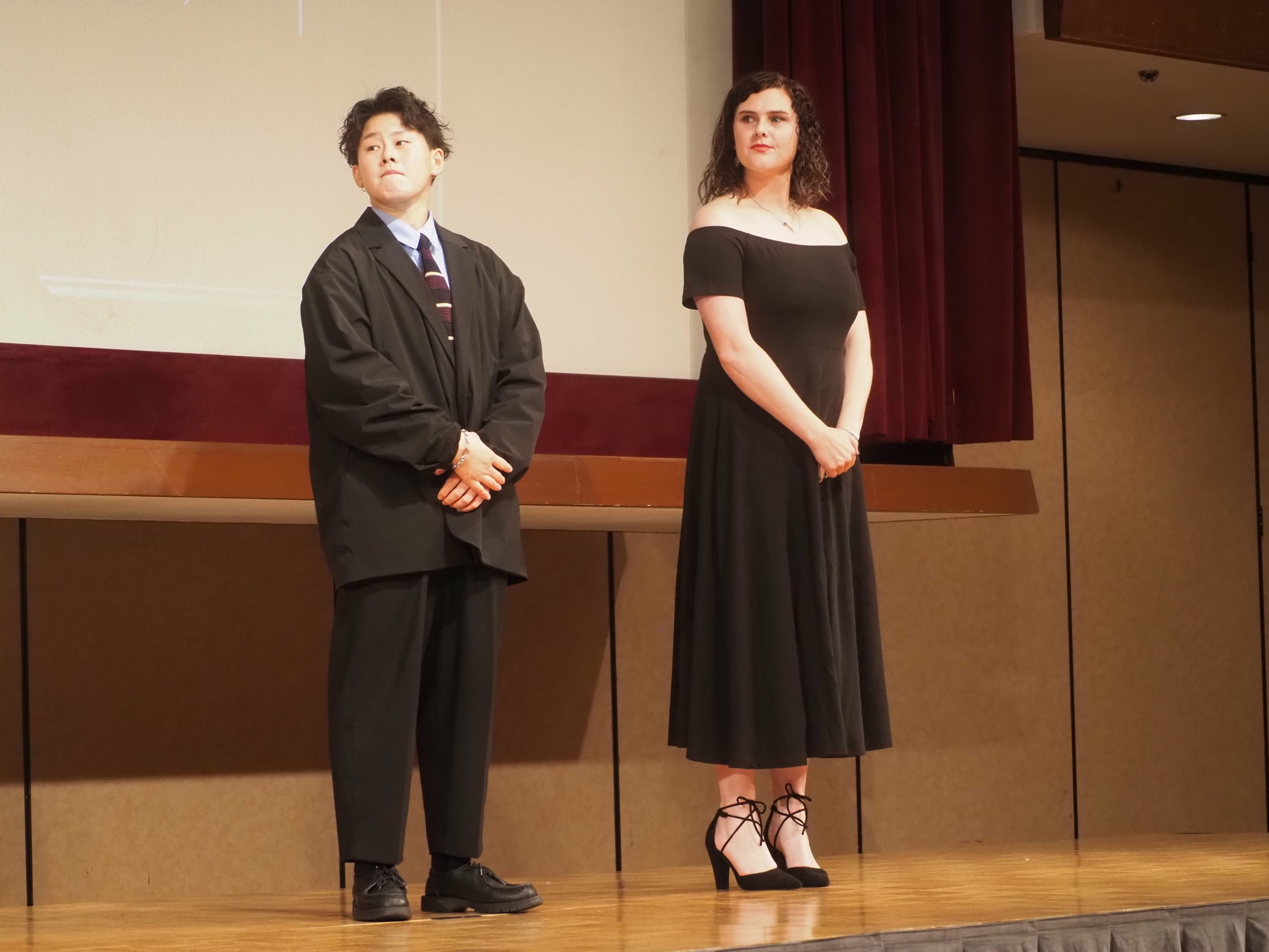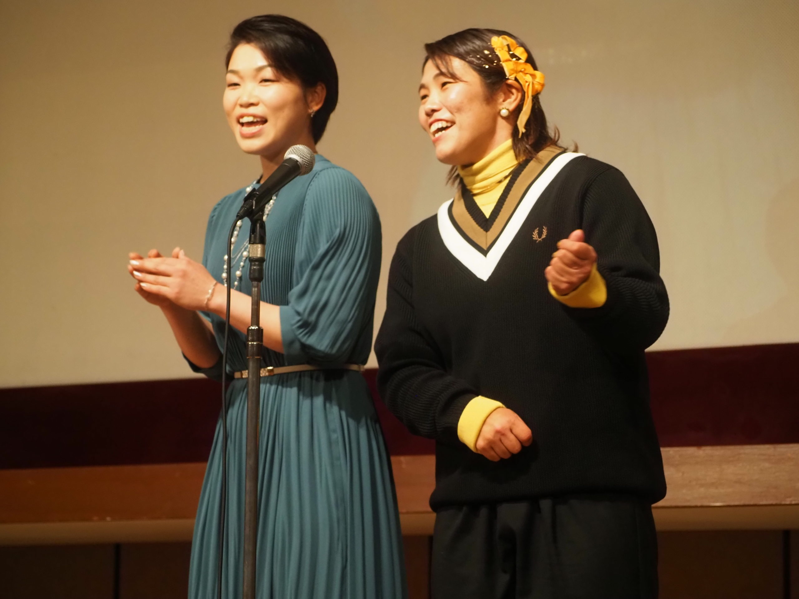 オープニングは、松尾ほの華選手(日本精工)と安川裕美選手(伊予銀行)の2人で結成されている「ミルクガール」のコントでスタート。JDリーグの特徴を上手に表現しながら、笑いの要素もしっかり組み込み、会場を沸かせました。