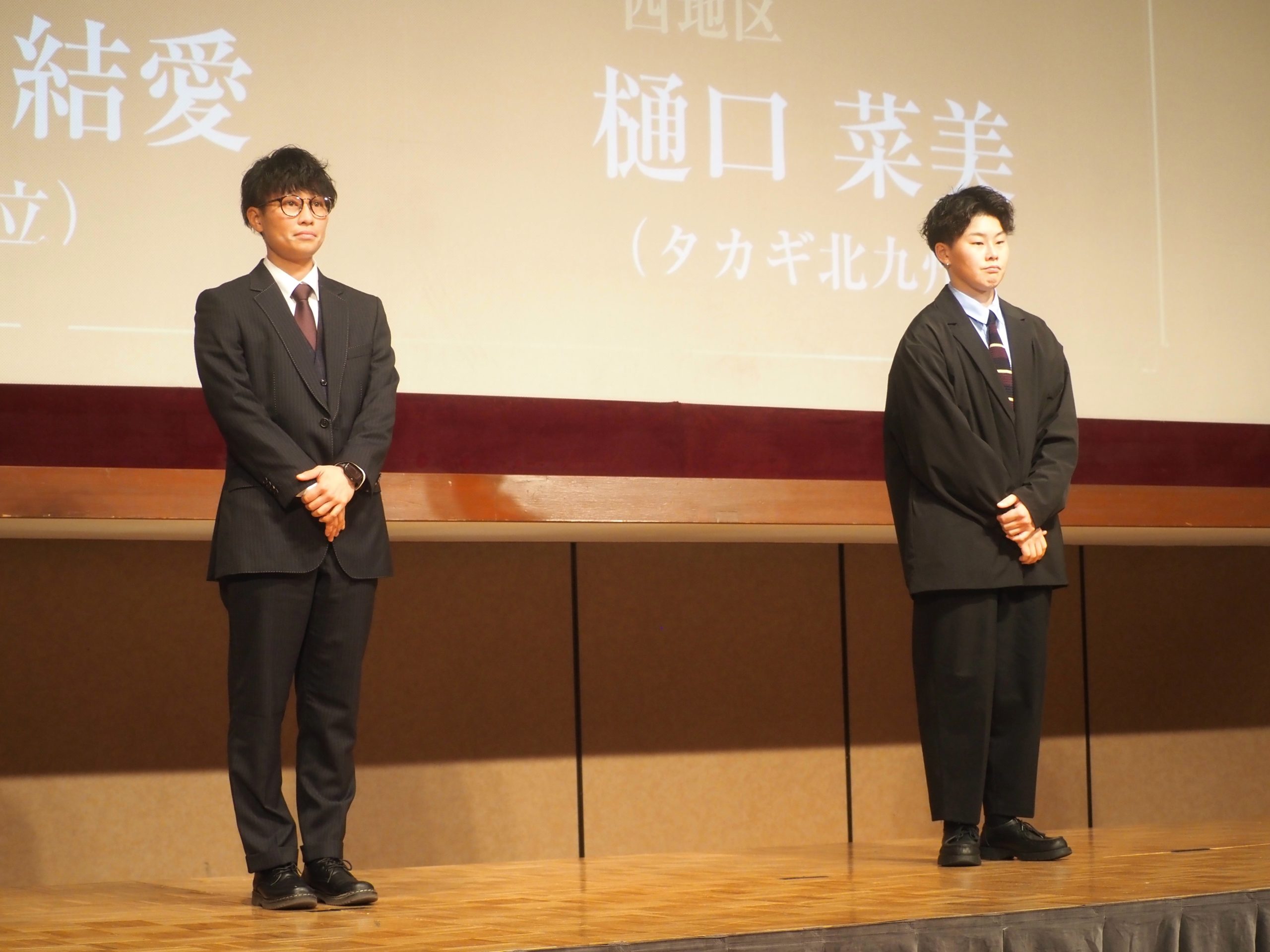 西地区のベストナインは、投手がトヨタレッドテリアーズの後藤希友選手、捕手も同じくトヨタレッドテリアーズの切石結女選手、一塁手は首位打者賞も獲っているSGホールディングスギャラクシースターズのStacyPorter選手、二塁手はトヨタレッドテリアーズキャプテンの鎌田優希選手、三塁手は伊予銀行ヴェールズの川口茉菜選手、遊撃手も伊予銀行ヴェールズの辻井美波選手、外野手は、本塁打賞も獲得しているタカギ北九州ウォーターウェーブの樋口菜美選手、トヨタレッドテリアーズのBubba Nickles選手、そしてイタリアから参戦のSGホールディングスギャラクシースターズErika Piancastelli選手の3名、指名選手は伊予銀行ヴェールズのLisa Maulden選手でした。プレゼンターはJDリーグオフィシャルパートナーミズノ株式会社の長岡一郎氏。