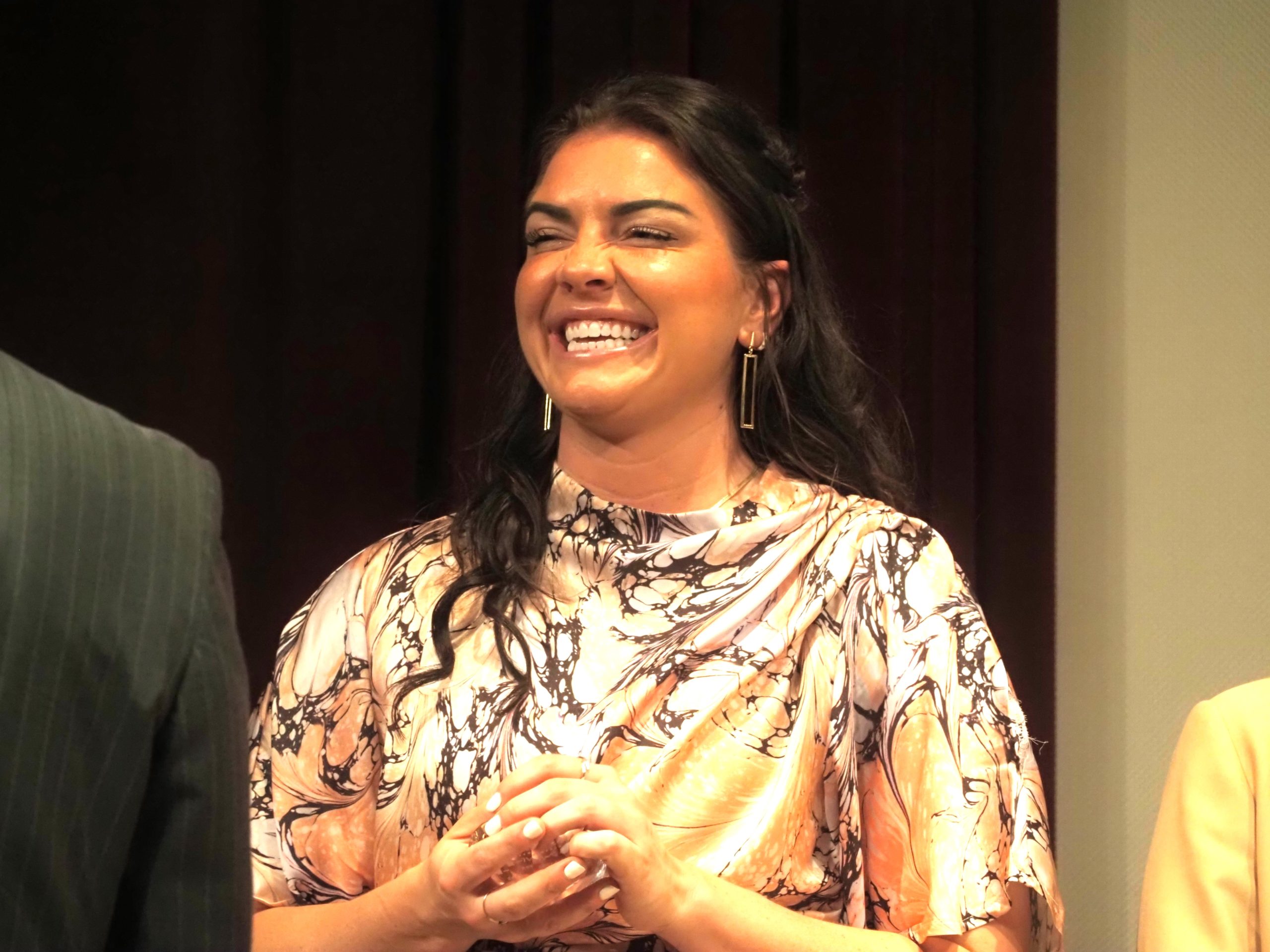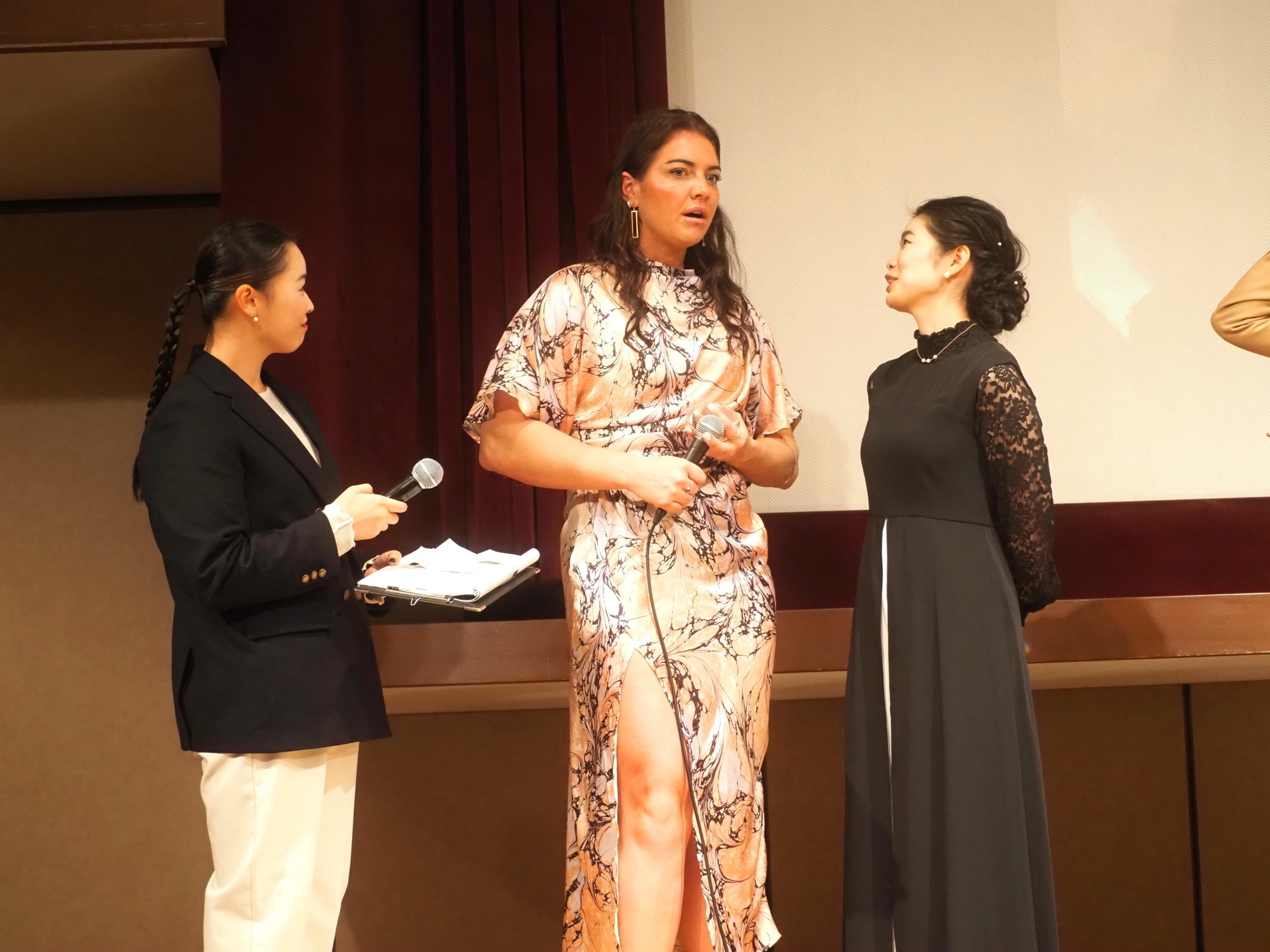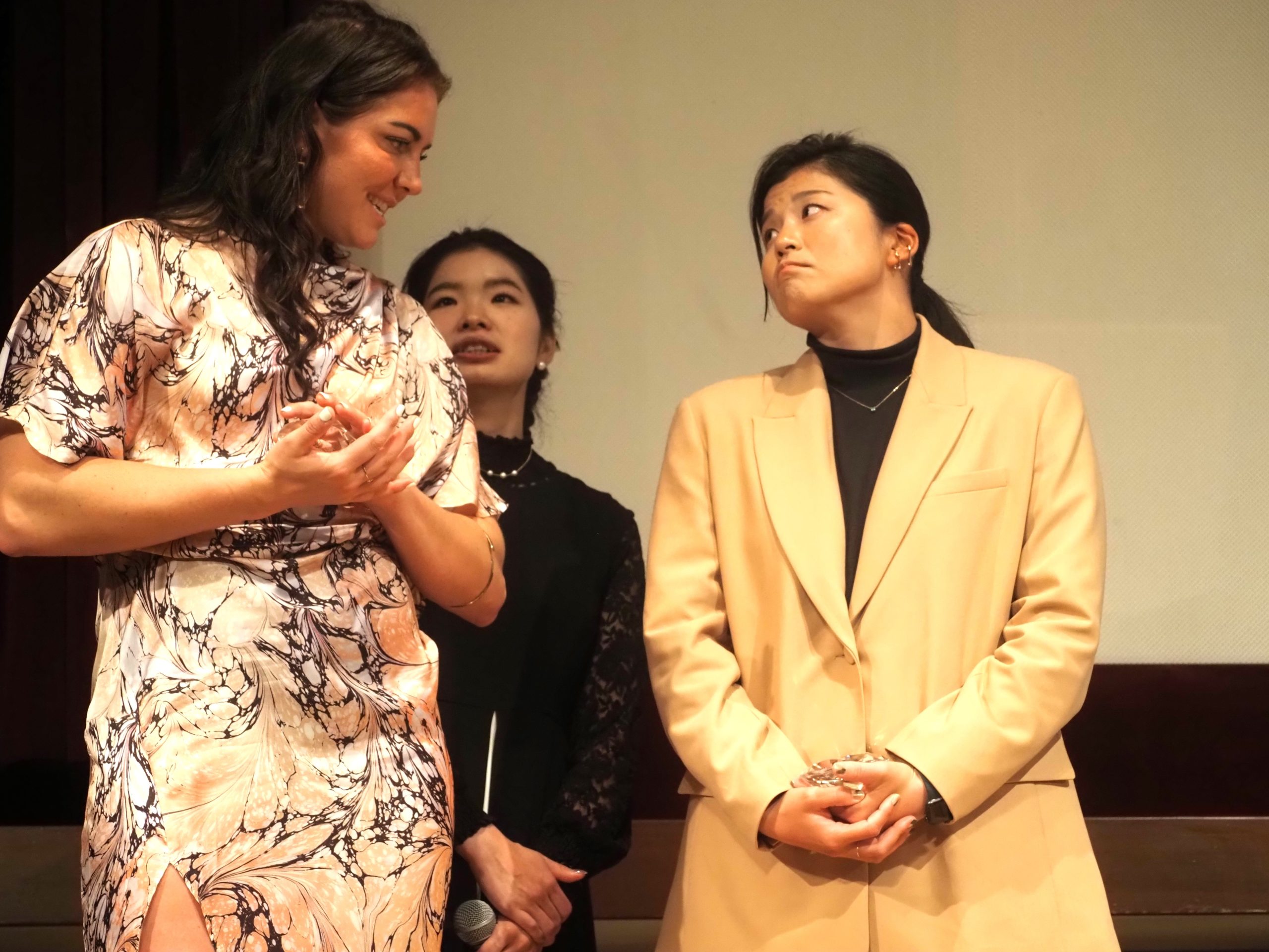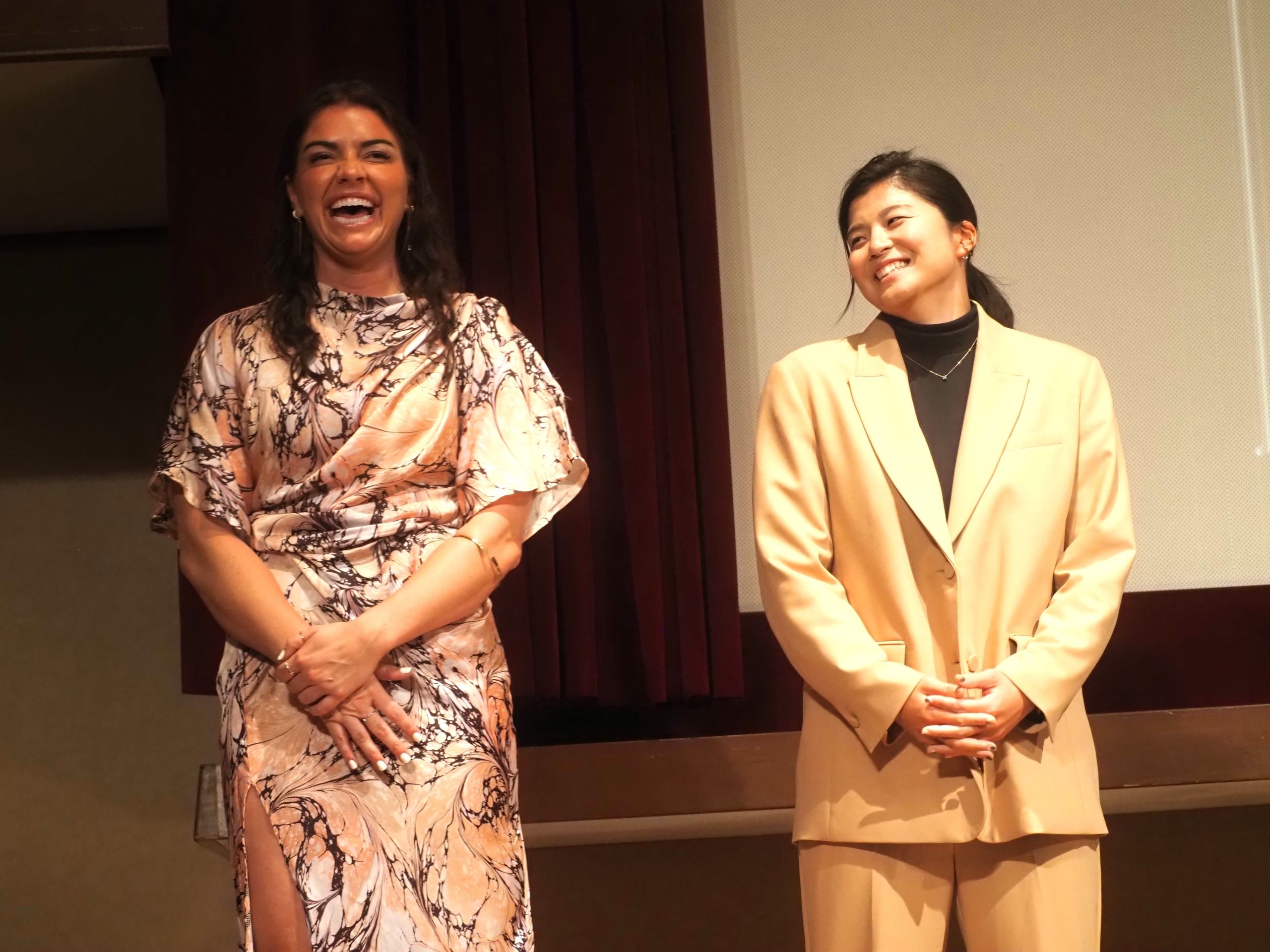 インタビュアーは坂本実桜選手。フーバー選手は今シーズンのチームメイトとの一番の思い出についてこう語っています。「一つに絞ることは難しい。毎日一緒に練習して毎試合、チームメイトと思い出を作っている。」我妻選手はピンチの時や競っているときはどんなことを考えてプレーしているかの問いに「慌てずしっかりやるべきことをシンプルに考えてピッチャーを助けられるように考えている」森山選手は移籍一年目でこのような賞を獲ることは難しいと思うが意識したことについては?「特にないが周りの方々に恵まれて応援してくれるファンも増え、そのおかげでこんな素敵な賞をいただくことができたと思っている」川畑選手は今の気持ちを誰に報告したいか「親に報告したい。どんな結果であろうと試合の度に連絡をくれていたので」坂本選手は練習の時に意識していることは?「相手のピッチャー、場面、得点差等すべて考えて練習することを心掛けている」工藤選手はチャンスに強いバッティングをしているが、一番心に残っている場面は?「最後の決勝の先制ホームラン」塚本選手は今年を振り返った感想を「今年はJDリーグという新しいリーグになって沢山の方々に支えられてファンの方に応援していただき、あらためてソフトボールができることに感謝を感じる一年だった」原田選手は自分の思う今シーズンのベストプレーは?「全試合がベストプレー。JDリーグがあらたに始まって大好きなソフトボールを素晴らしい仲間といつも応援してくれるファンの皆様の前でプレーできることが毎試合自分の喜びであり、ベストプレーだった」松本選手も移籍一年目だったが変化したことはあったか?「移籍して沢山のことを教えてもらった。それをしっかり自分のものにできるように練習をしてきたのでこういう結果を出すことができてうれしく思う。」藤田選手には二刀流の面白さを聞いた。「普通の野手ではわからないピッチャーの心理やバッターの心理がわかること。」と話しました。