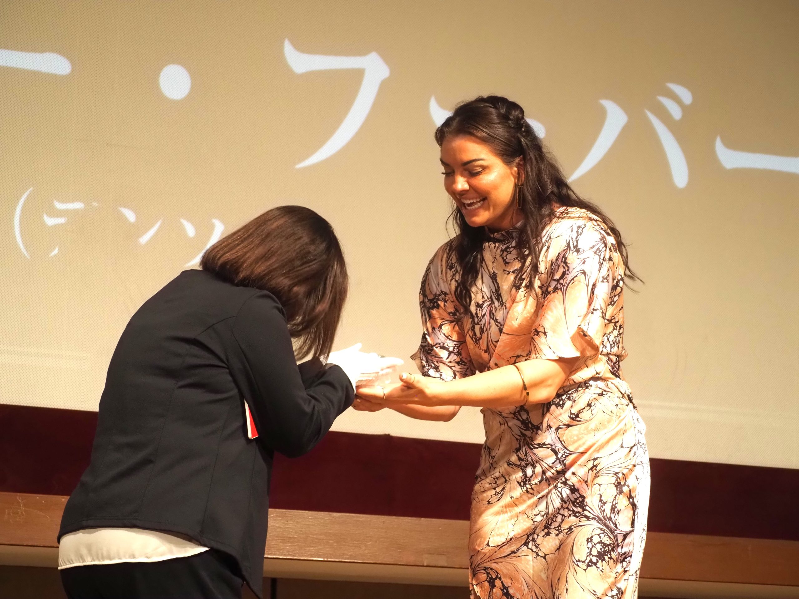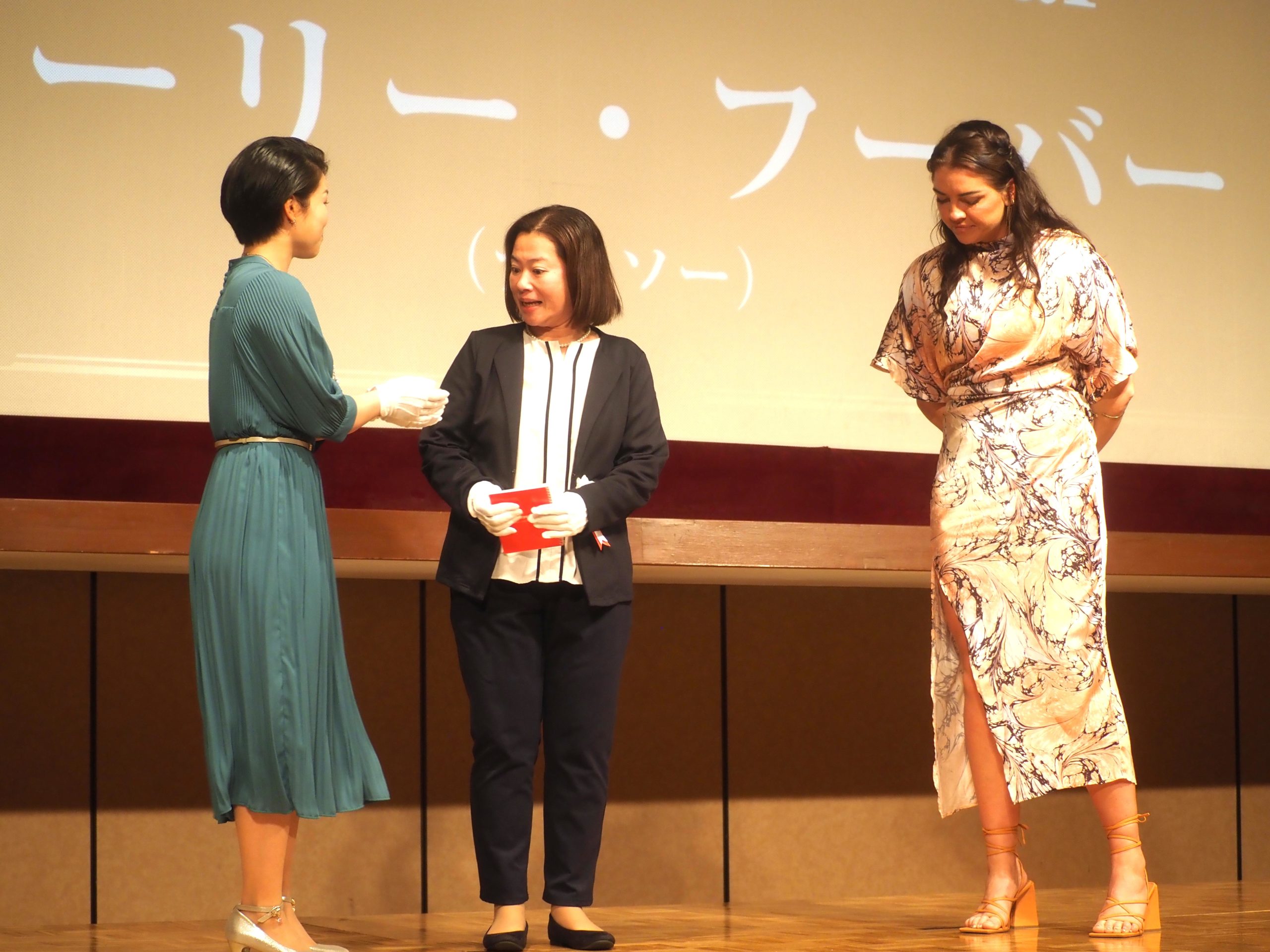 Most Wow! Player of the Year賞はデンソーブライトペガサスのCarley Hoover選手でした。この賞はレギュラーシーズン全試合で実施したMost Wow! Player賞を最も多く受賞した選手に贈られます。フーバー選手は今シーズン7回受賞しました。プレゼンターはファン代表の及川氏。インタビュアーは須藤麻里子選手でした。