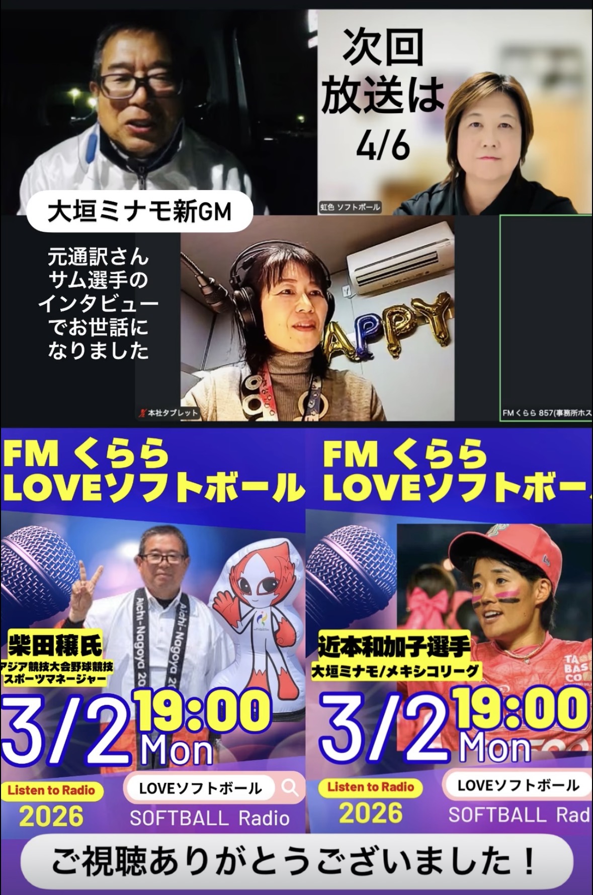 2026【ラジオ番組】LOVEソフトボール FMくらら857 月曜19時