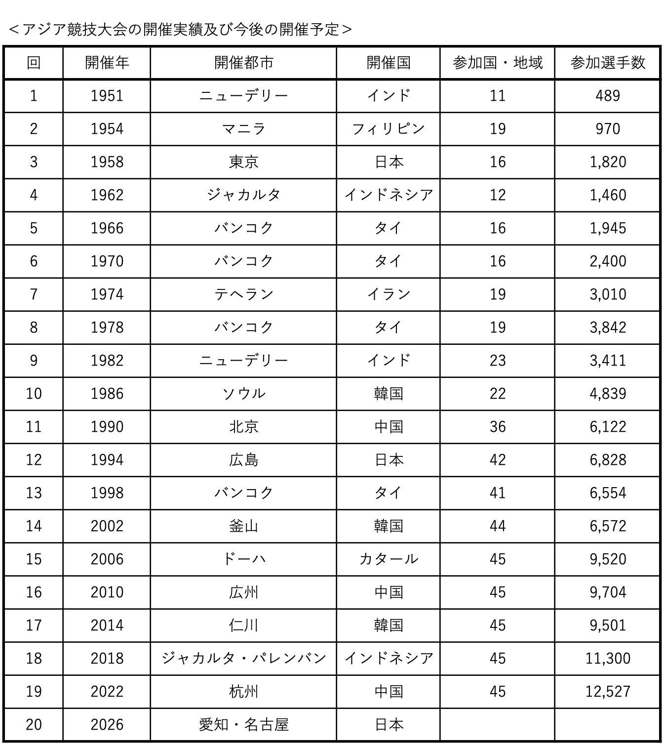 アジア競技大会(Asian Games)は、アジア・オリンピック評議会(OCA:Olympic Council of Asia)が主催する