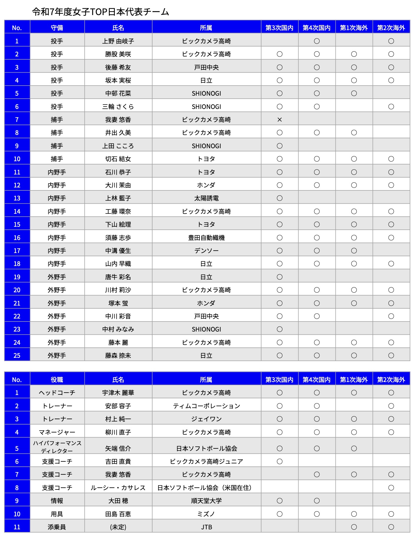 | 2025.12/4-12/16 | 第3次国内強化合宿 | 群馬県高崎市・宇津木スタジアム |