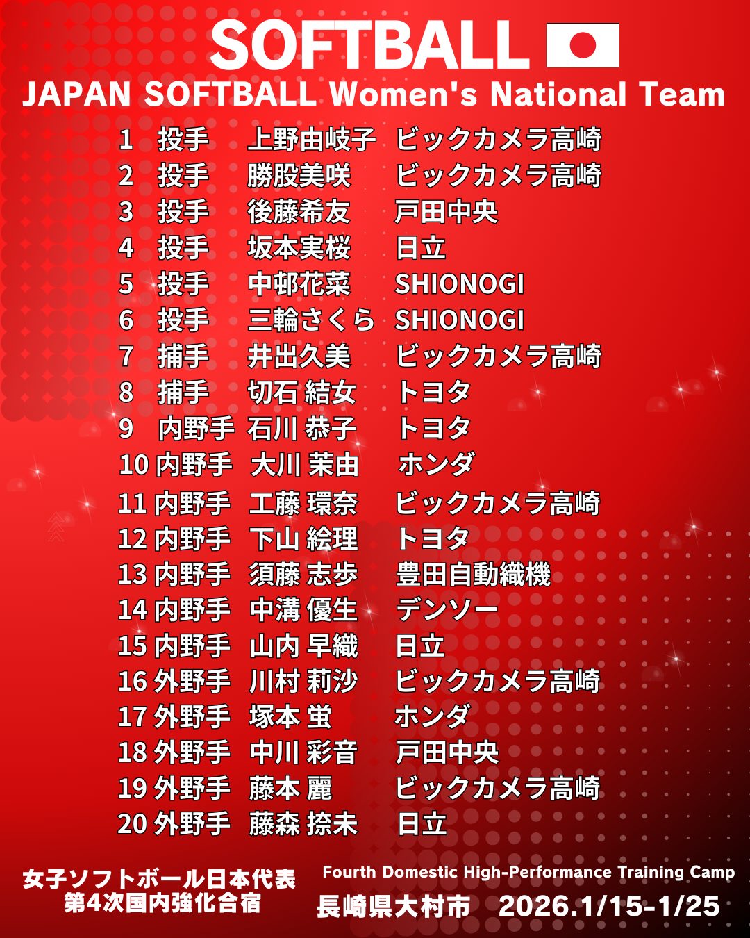 JAPAN【長崎合宿】女子ソフトボール日本代表 第4次国内強化合宿 2026.1/15-1/25 長崎県大村市