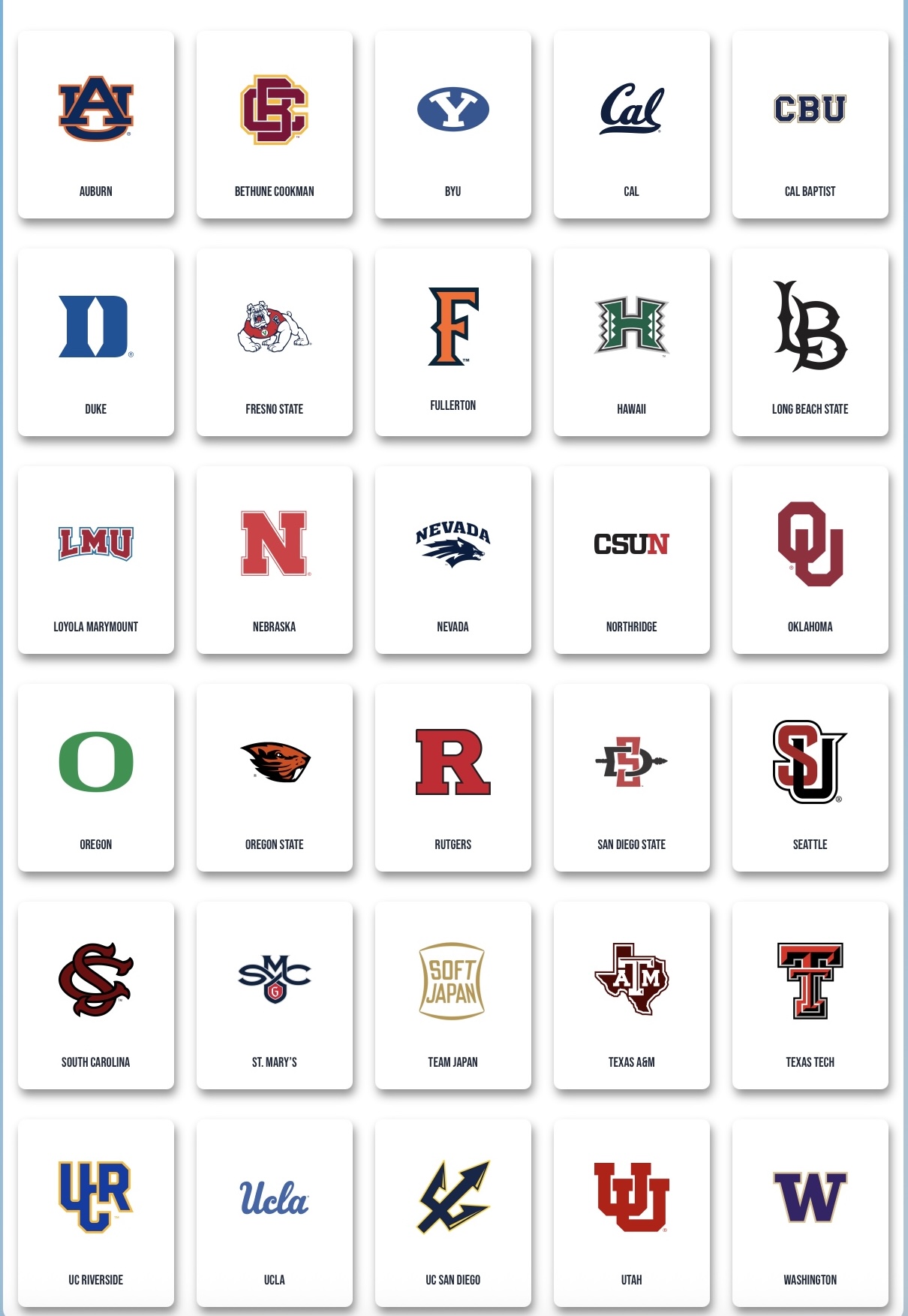 配信:FloCollege(FloSoftball)にて全試合ライブ配信
