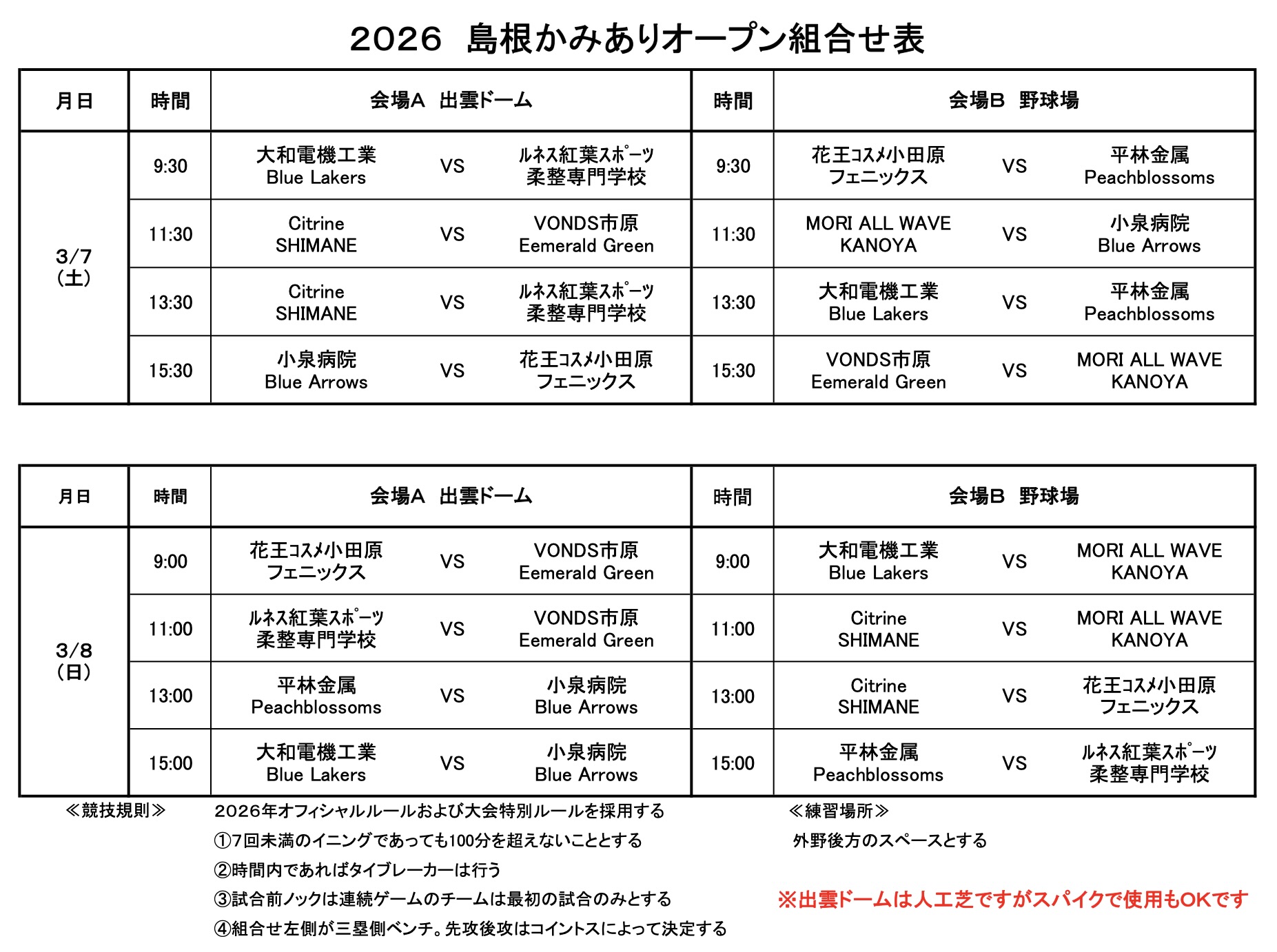 2026年3月7日(土)・8日(日)の2日間、島根県出雲市の出雲ドームにて「第1回島根かみありオープン」が開催されます。