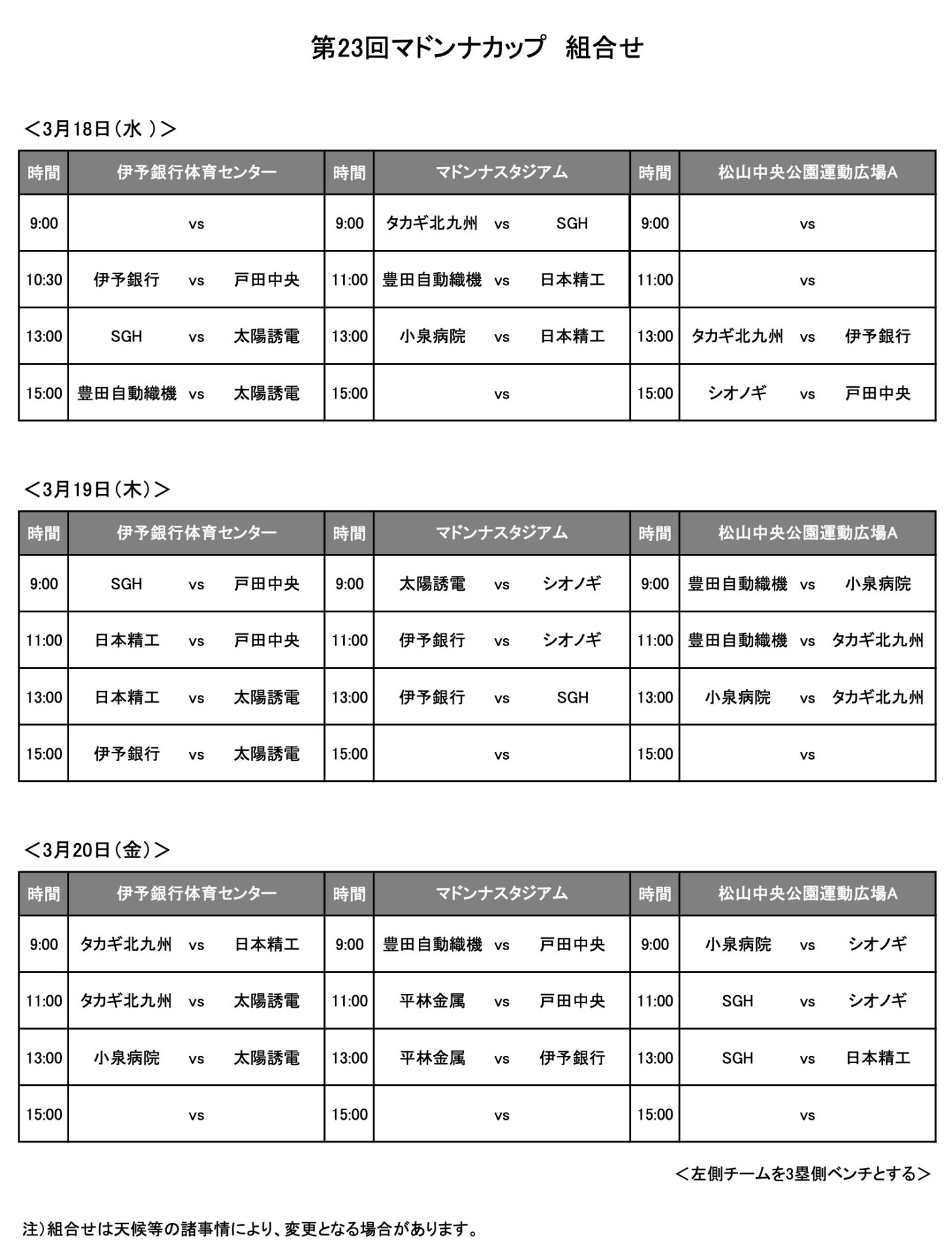 2026年3月18日(水)から20日(金)までの3日間、愛媛県松山市のマドンナスタジアムほかで「第23回マドンナカップ」が開催されます。