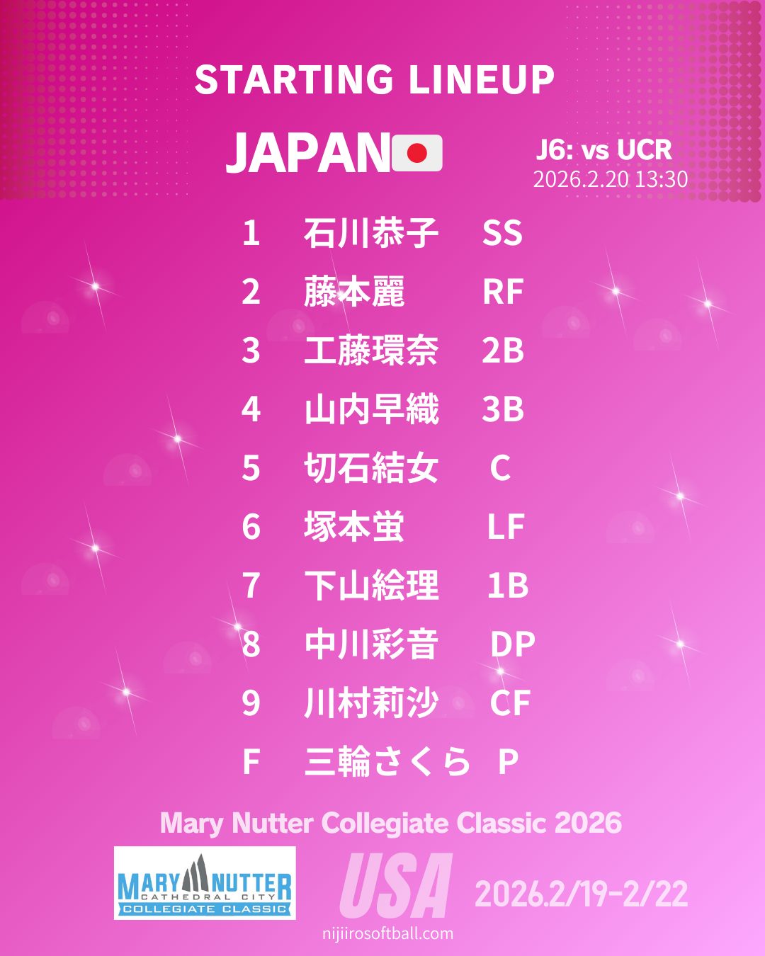 | 1 | #18上野由岐子 Y.UENO | Pitcher |