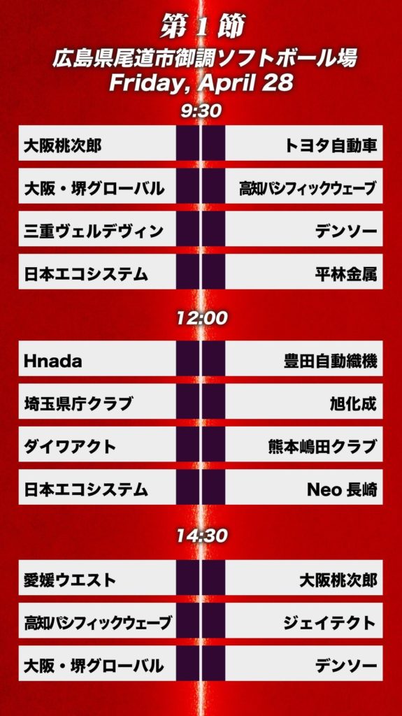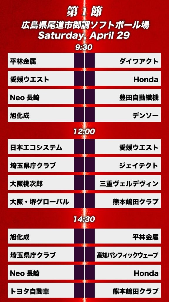 日本男子ソフトボールリーグは4/28(土)に開幕します。