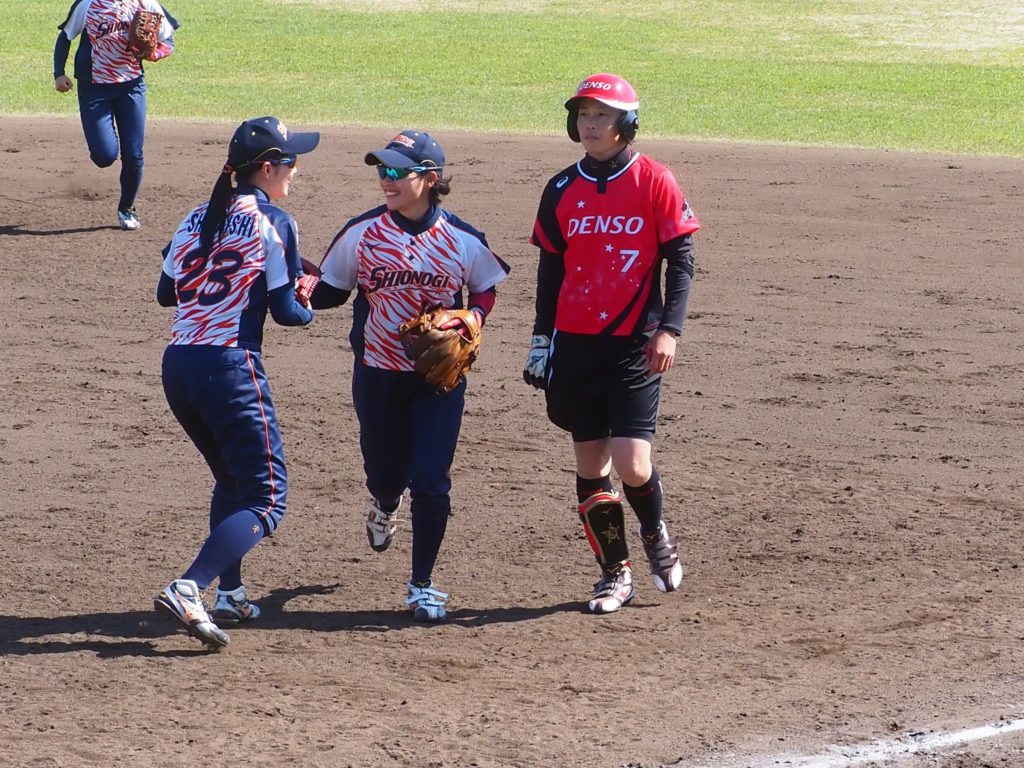 二塁打)戸村美紅②(シオノギ)、山田恵里、佐野由貴美(デンソー)