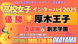 第77回全国高校女子ソフトボール選手権大会(2025年7月) 2025年7月に岡山県で開催された「全国高校女子ソフトボール選手権大会」は、厚木王子高校(神奈川)の優勝で幕を閉じました。厚木王子高校の優勝は3年ぶり9回目。 […]