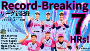 戸田中央メディクス埼玉 がチームとして 1試合7本塁打 を放ち、リーグ新記録を樹立しました。